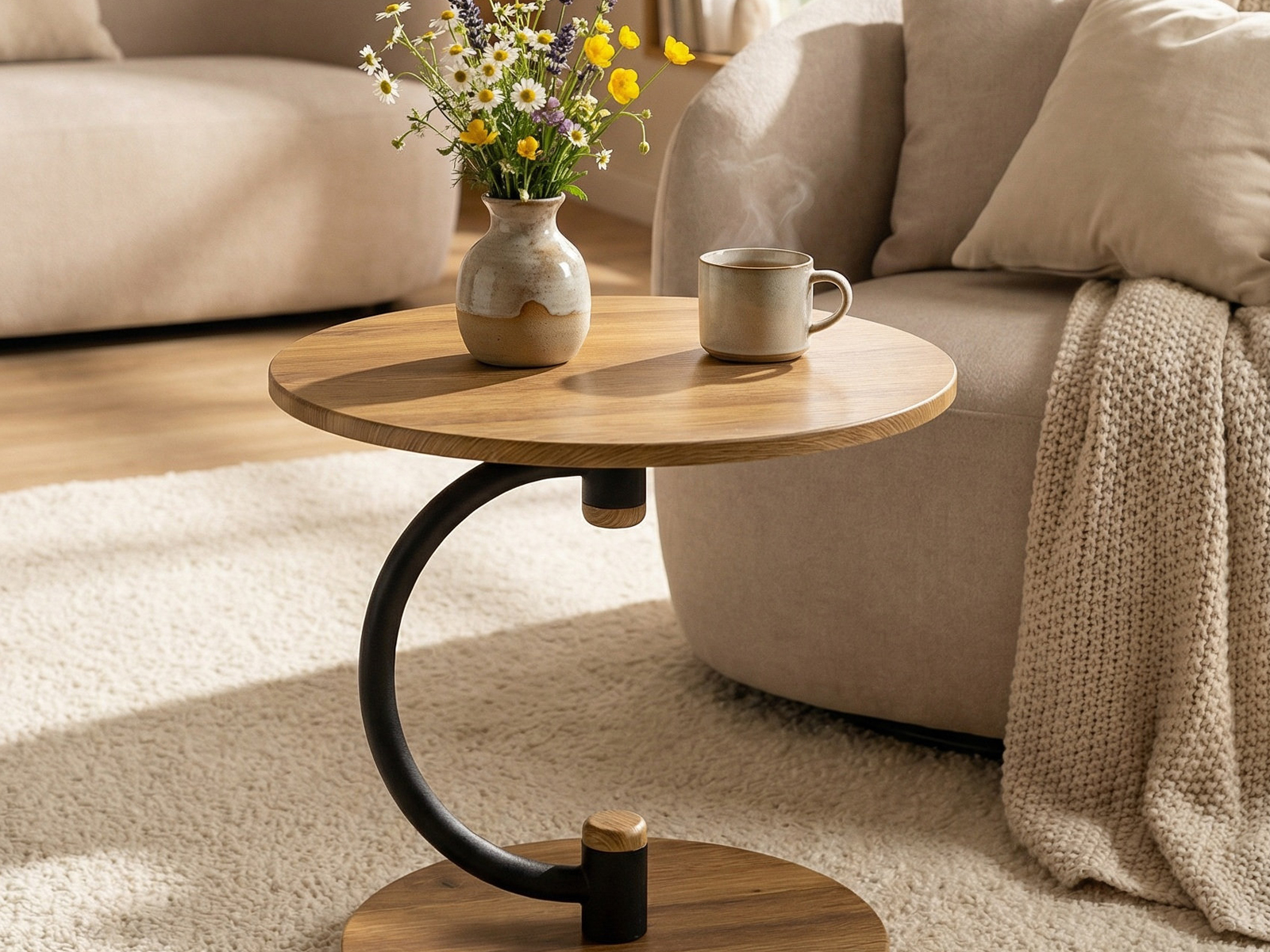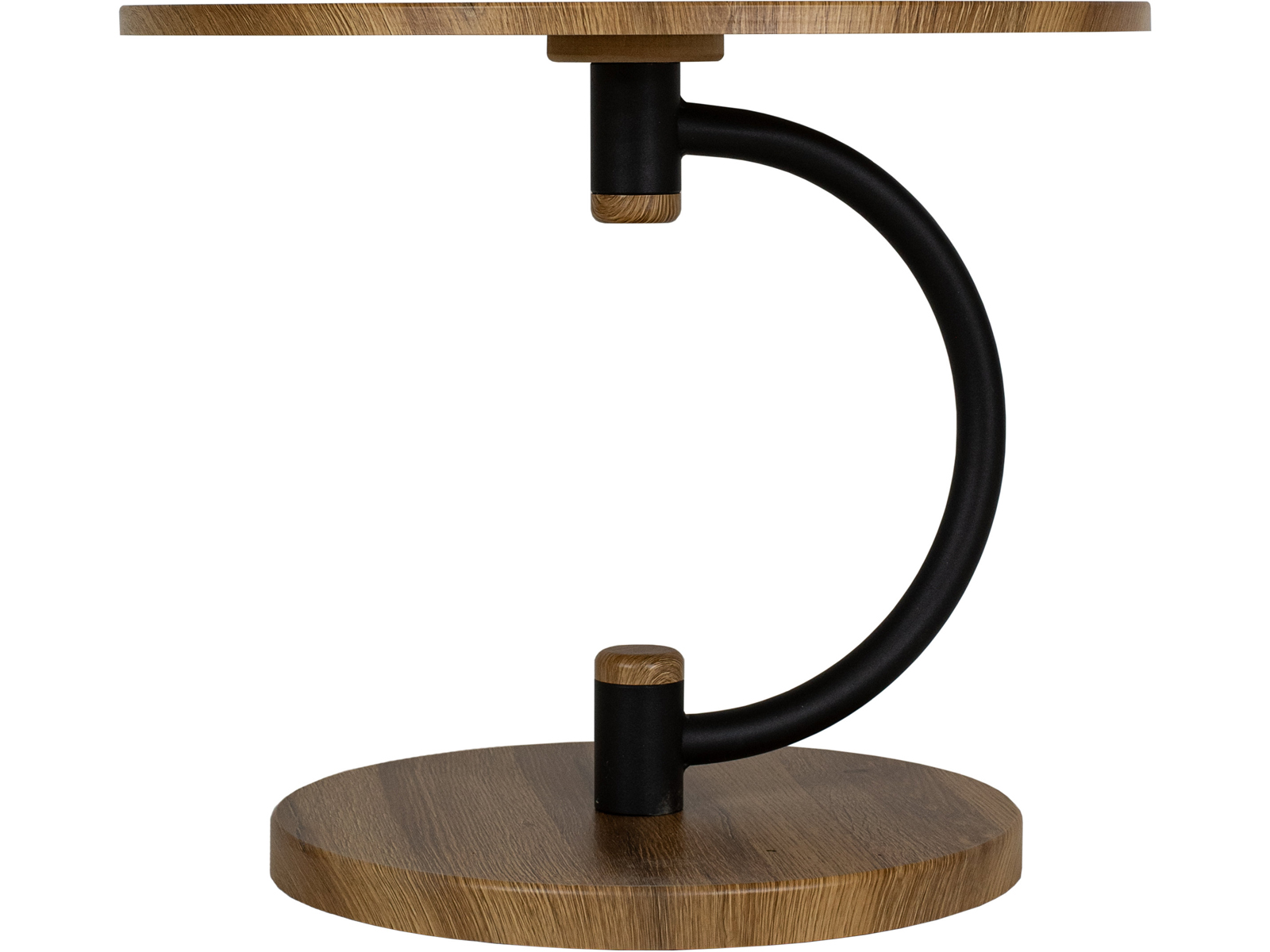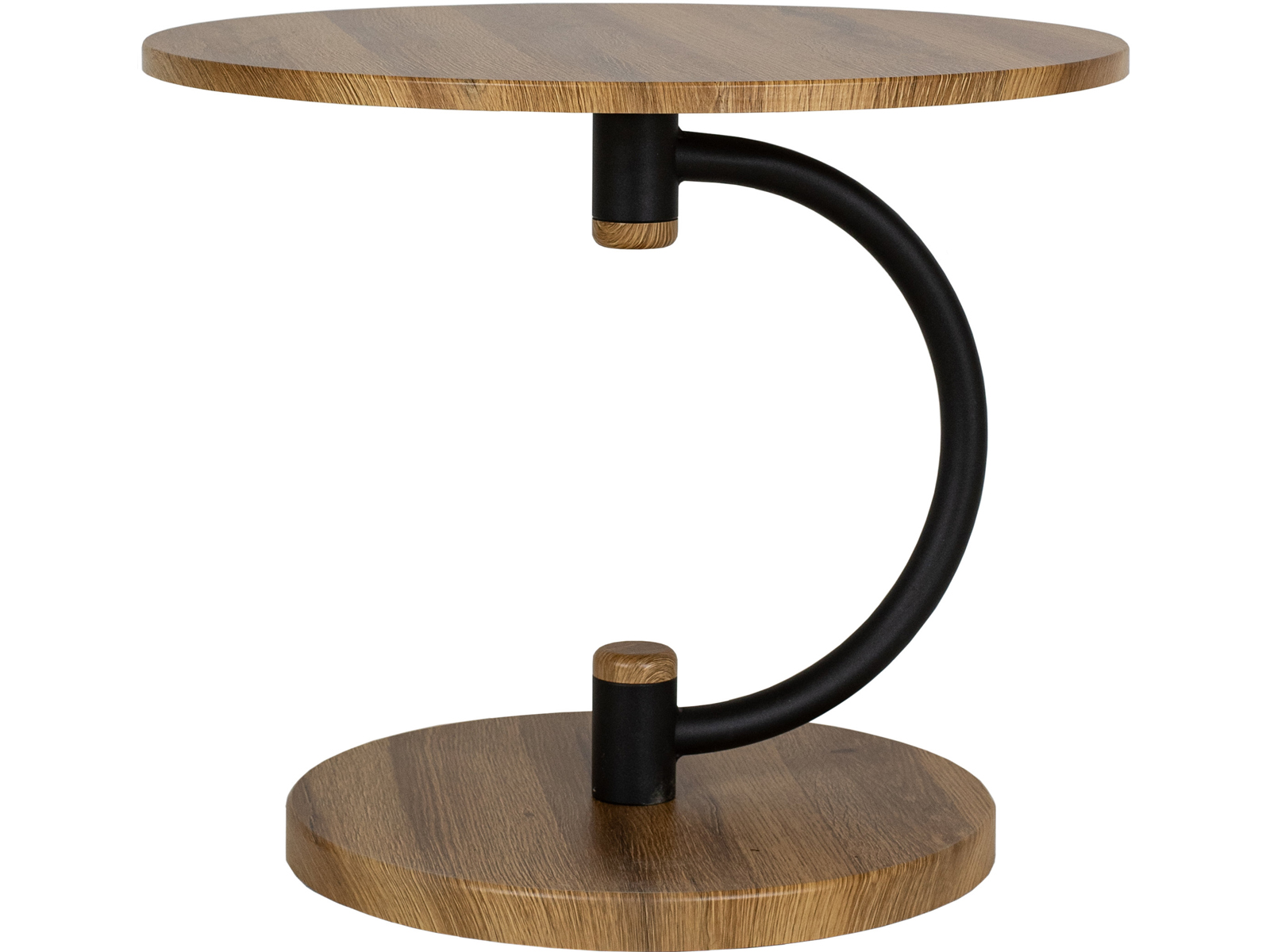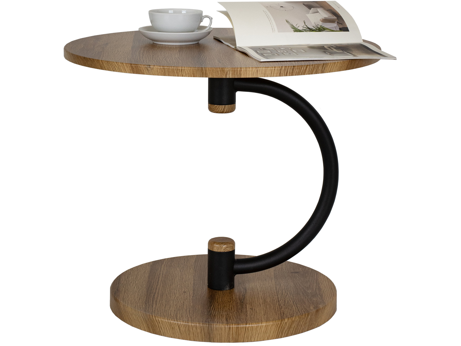 Журнальный стол Дуэт 13 идеально подойдет для оформления современного интерьера в доме или квартире. Деревянная столешница выполнена из высококачественного МДФ и покрыта защитной пленкой. Изящная опора в виде полукруга изготовлена из прочного металла. Благодаря круглому основанию с диаметром 43 см из МДФ стол максимально устойчив. Этот журнальный столик подходит для использования в любых зонах вашего дома. Благодаря компактным размерам, он легко впишется в небольшое пространство, придавая особую изюминку.