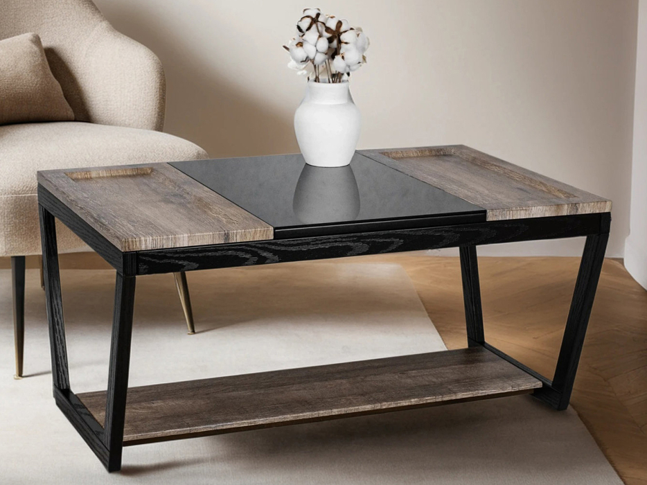 Журнальный стол BeautyStyle 33 — это идеальное сочетание контрастных материалов, создающее уникальный акцент в вашем доме или квартире. Прямоугольная столешница делится на три части: деревянные, выполненные из МДФ, покрытого защитной пленкой, и стеклянная часть. Столик гармонично впишется в любую гостиную, столовую или даже на балкон, придавая вашему дому неповторимый шарм. По бокам стеклянной столешницы расположены два несъемных подноса с небольшими бортиками, что предотвращает возможность соскальзывания предметов.
