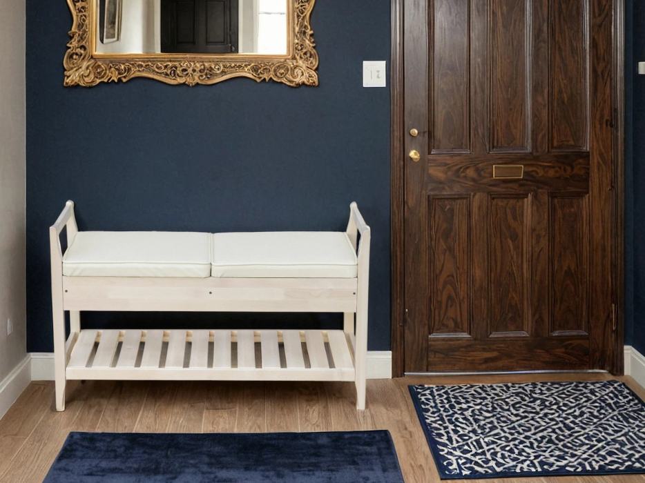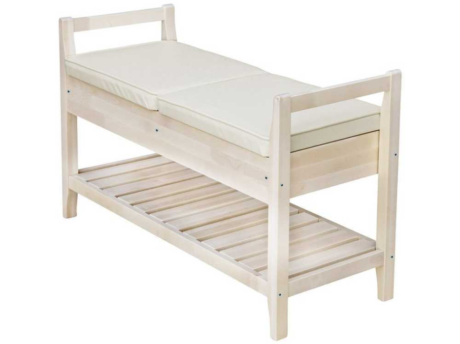 Компактное место хранения в прихожую в квартиру или на дачу. Скамья дополнена мягким сиденьем. Под сиденьем есть довольно вместительный ящик для хозяйственных мелочей. Кроме того, полка из ламелей предназначена для хранения нескольких пар обуви. Каркас изготовлен из массива дерева, что делает его легким и прочным, а также поддающимся реставрации в случае необходимости. Подлокотники не только ограничивают посадочное место, создавая некоторое ощущение посадки в кресле, но и являются ручками, за которые скамью легко переносить с места на место. Поставляется в разобранном виде, легко транспортируется и собирается. Рациональная покупка.