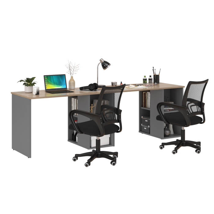 Отзывы о Столплит Два письменных стола Лайт 12.163 и два чёрных компьютерных кресла Дуб белый/Серый шифер