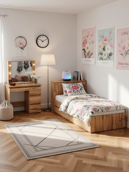 Кровать с ящиками Ксения 900 и столик косметический с подсветкой Сура. Комплектация состоит из кровати с выдвижными ящиками и косметического столика с подсветкой.