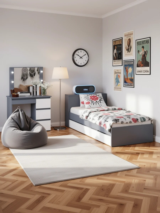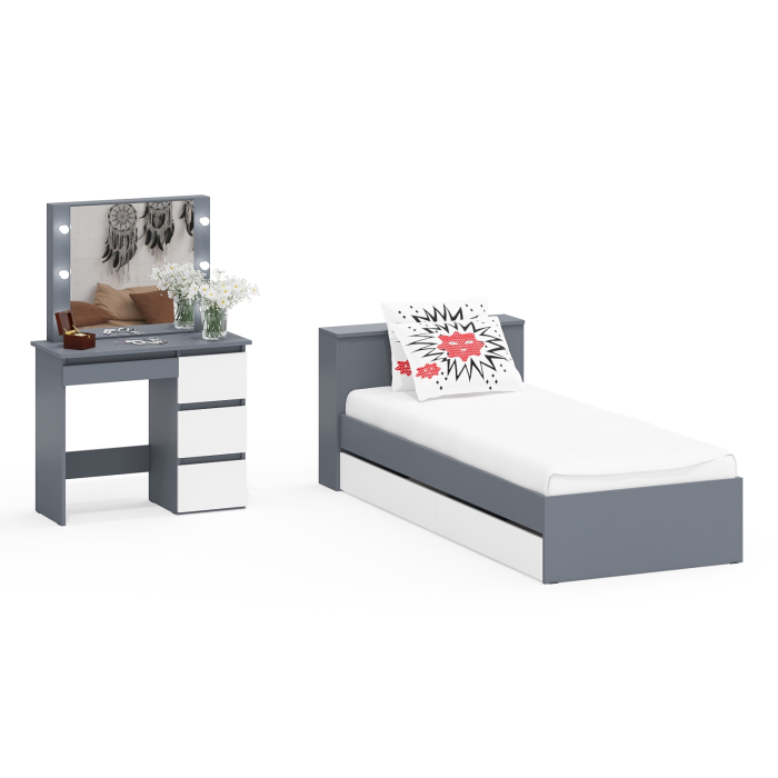 Отзывы о Столплит Кровать с ящиками Ксения 900 и столик косметический с подсветкой Сура Графит/Белый