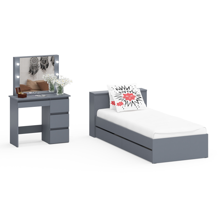 Отзывы о Столплит Кровать с ящиками Ксения 900 и столик косметический с подсветкой Сура Графит