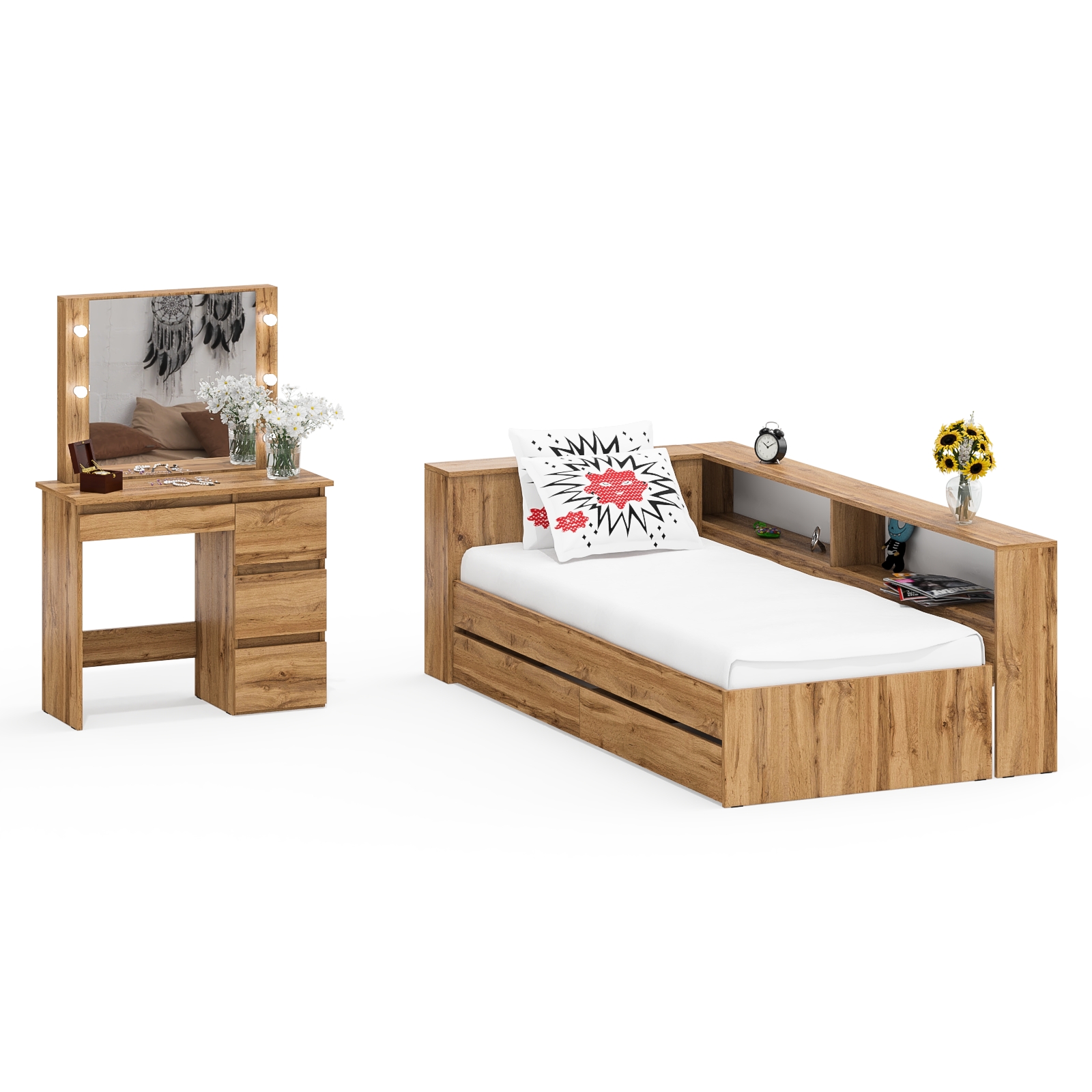 Отзывы о Столплит Кровать с ящиками с прикроватным блоком для вещей Ксения 900 и столик косметический с подсветкой Сура Дуб вотан