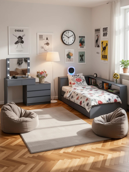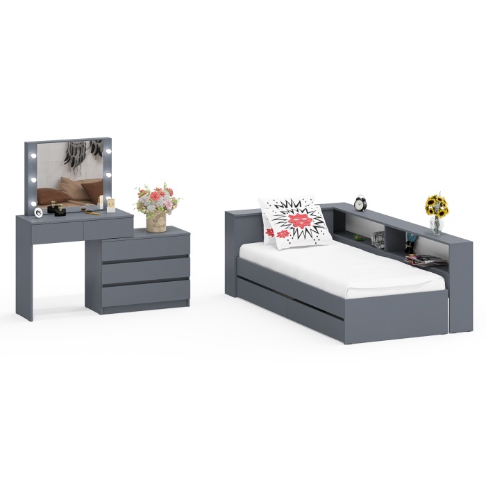 Отзывы о Столплит Столик косметический с лампочками 110 и Ксения 900 односпальная кровать с ящиками и прикроватным блоком Графит