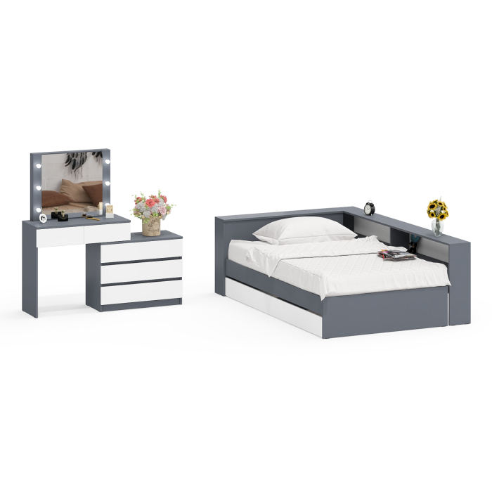 Отзывы о Столплит Туалетный столик для спальни с подсветкой 110 и Ксения кровать 1200 с ящиками и прикроватный блок Графит/Белый