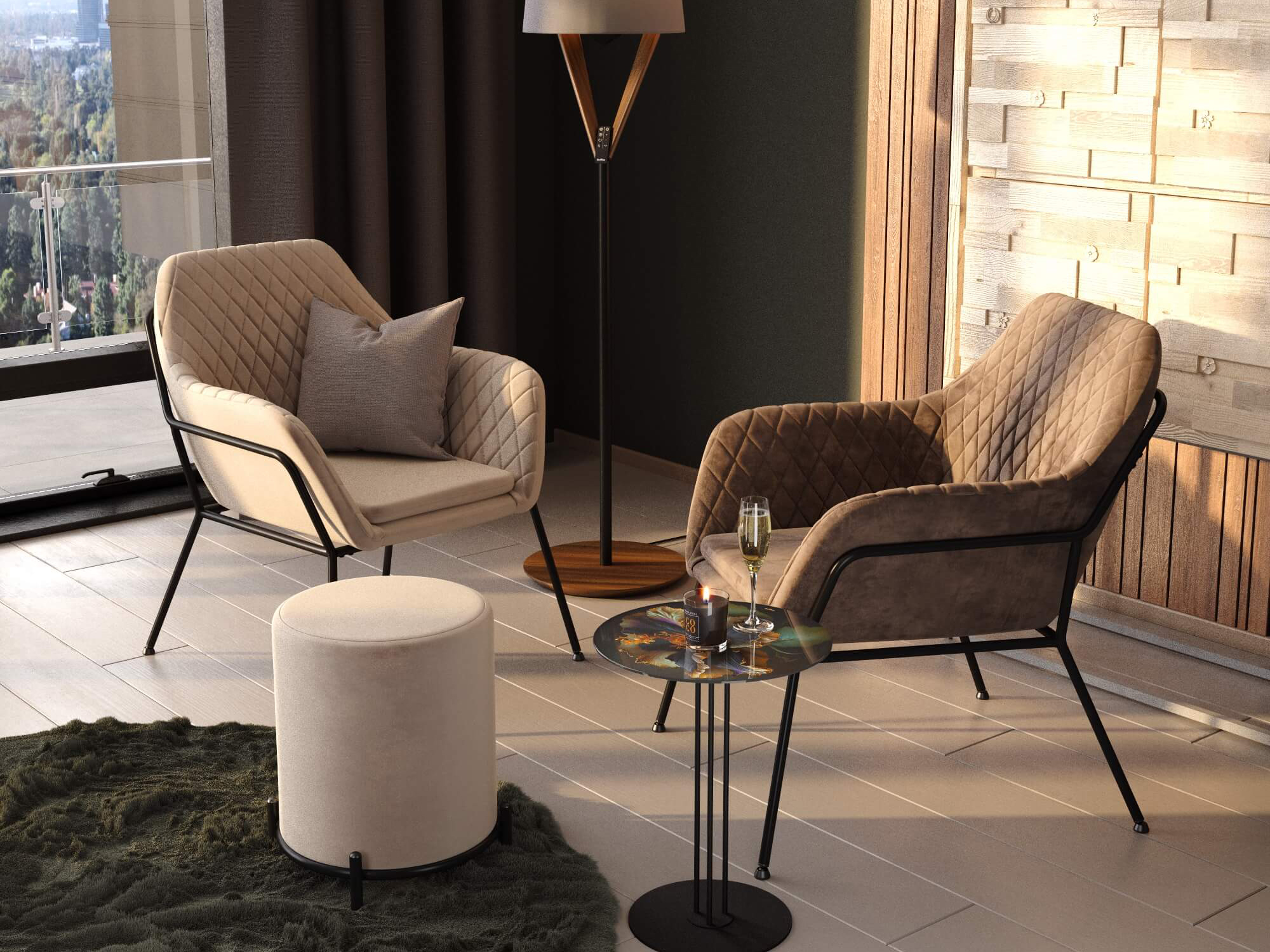 Каркас выполнен из трубы. Сидение выполнено из микровелюра с мягким наполнителем.
