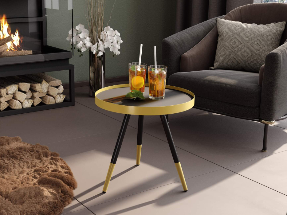 Столешница черная с золотом - необычное дизайнерское решение для интерьера! Столешница из МДФ отличается повышенной жесткостью и устойчива к воздействию влаги. Материал не содержит и не выделяет вредных веществ. Диаметр столешницы 445 мм.
