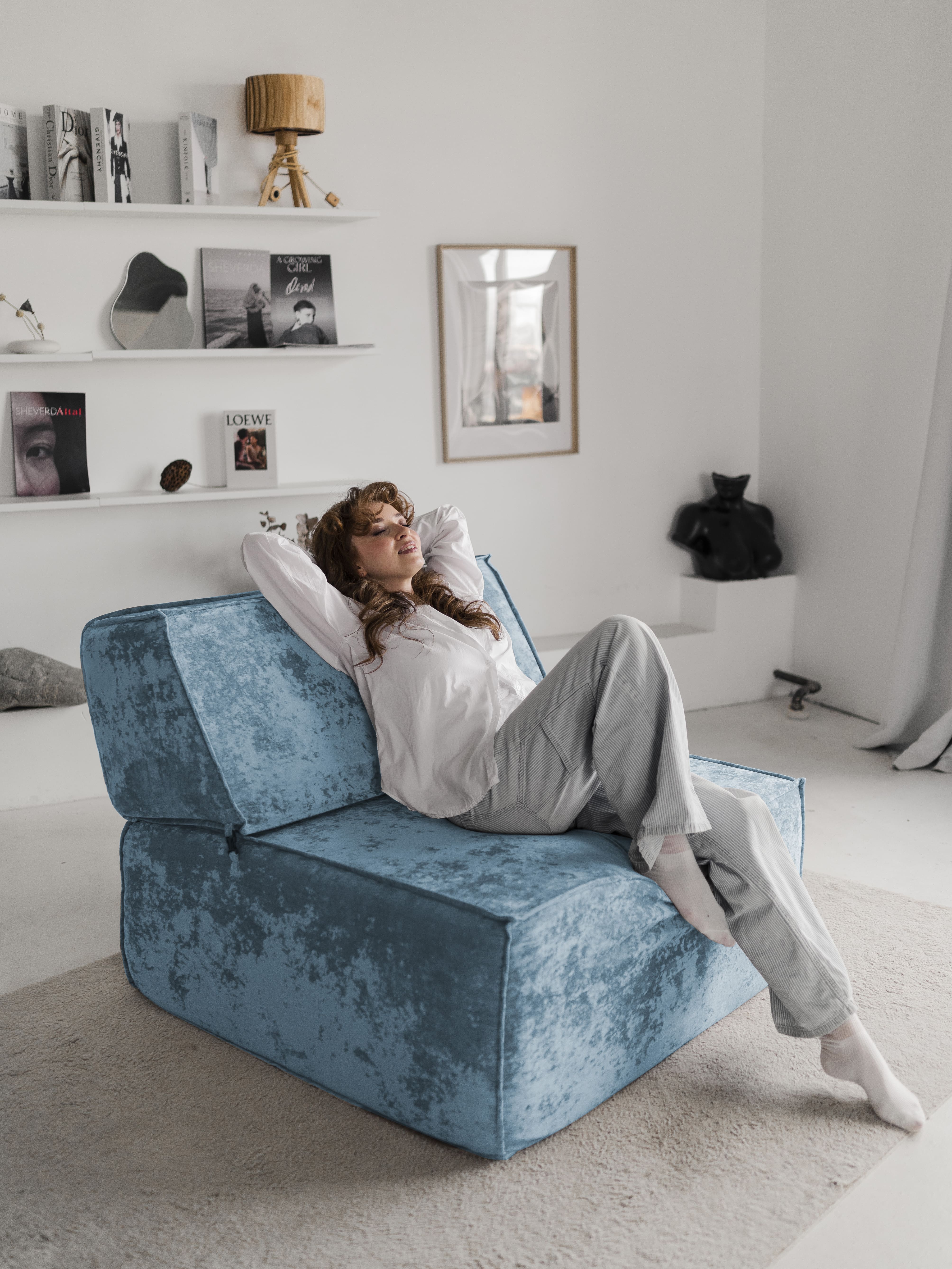 Отзывы о Столплит Бескаркасное кресло Клайд,плюше Велюр голубой