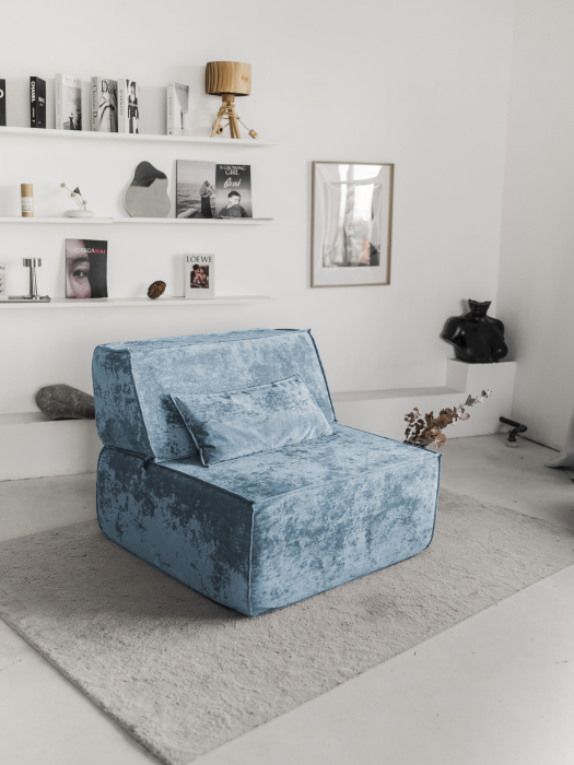 Бескаркасное кресло Клайд,плюше (Велюр голубой)