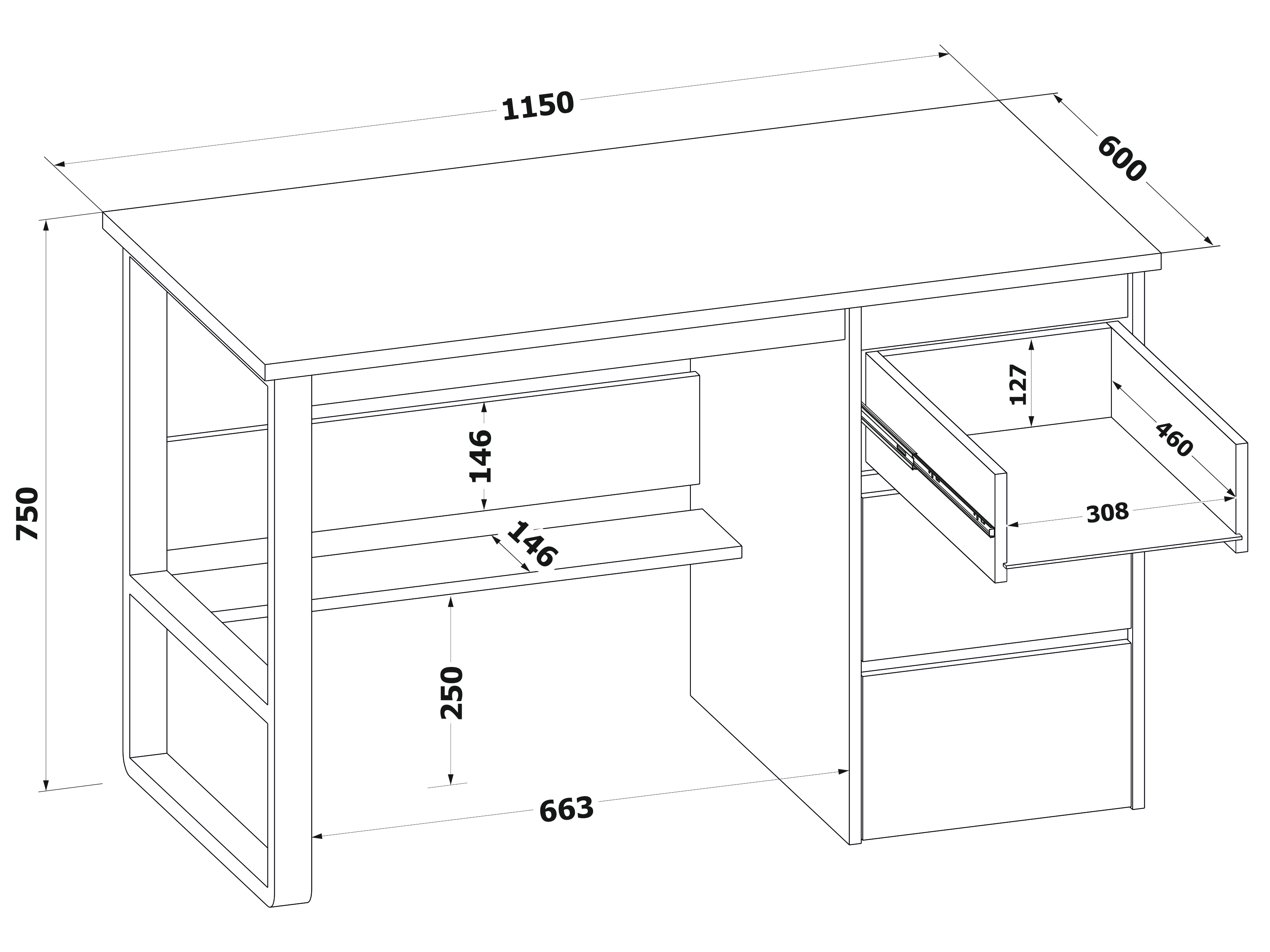 • Максимальная нагрузка на столешницу: 20 кг.