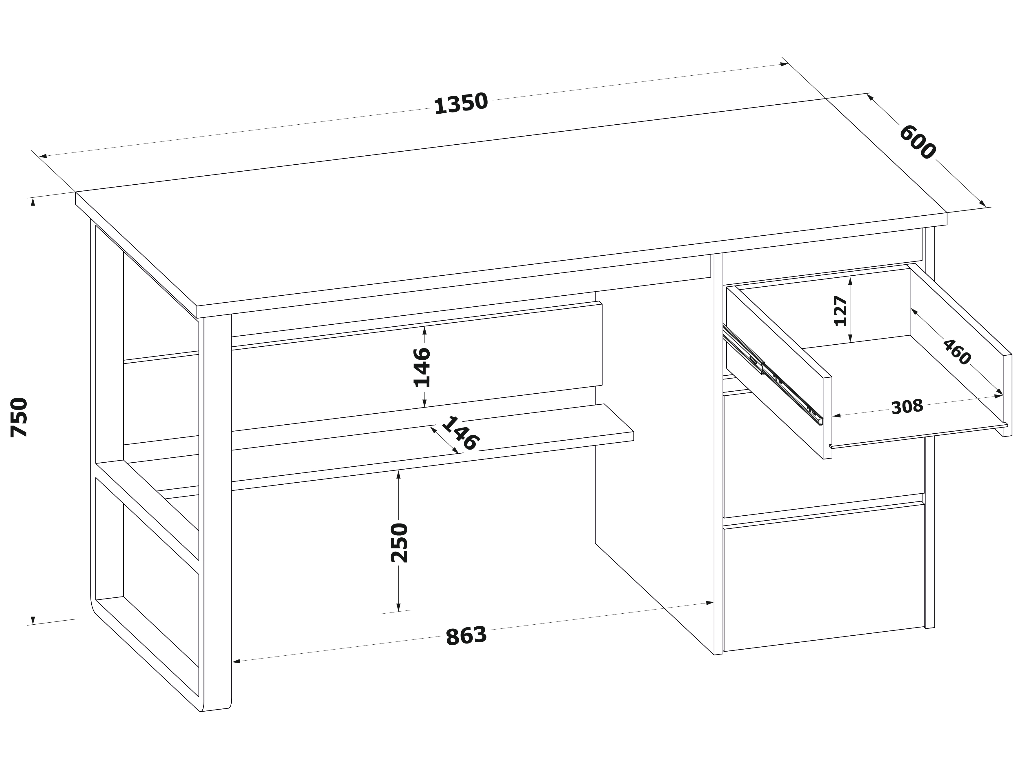 • Максимальная нагрузка на столешницу: 20 кг.