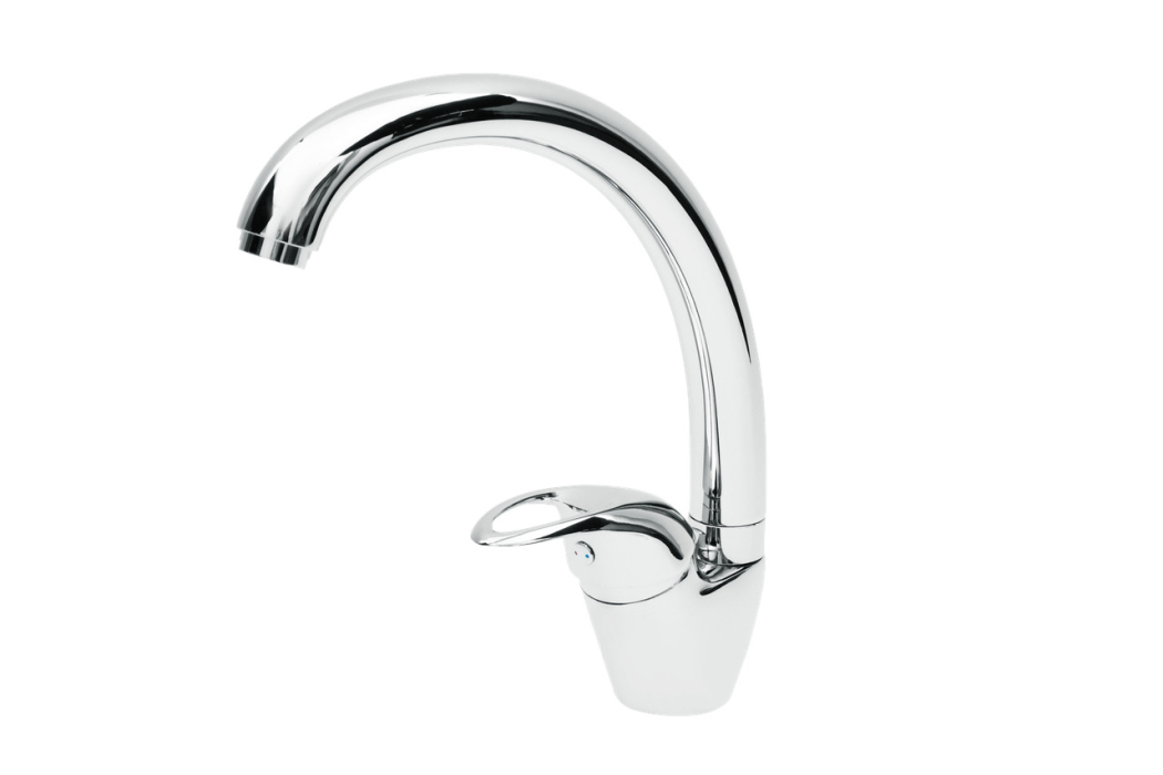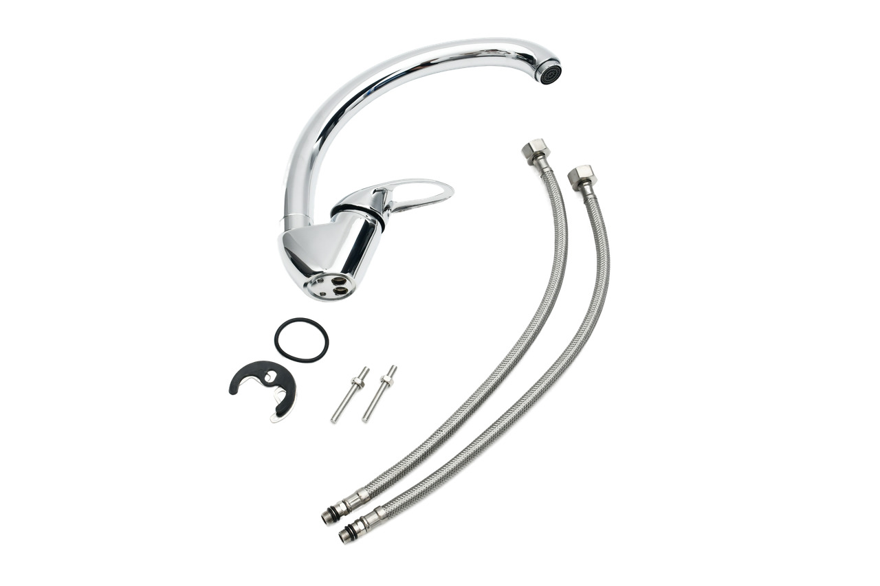 Смеситель для кухни из латуни, с поворотным изливом, однорычажный. Фирменная картонная упаковка.