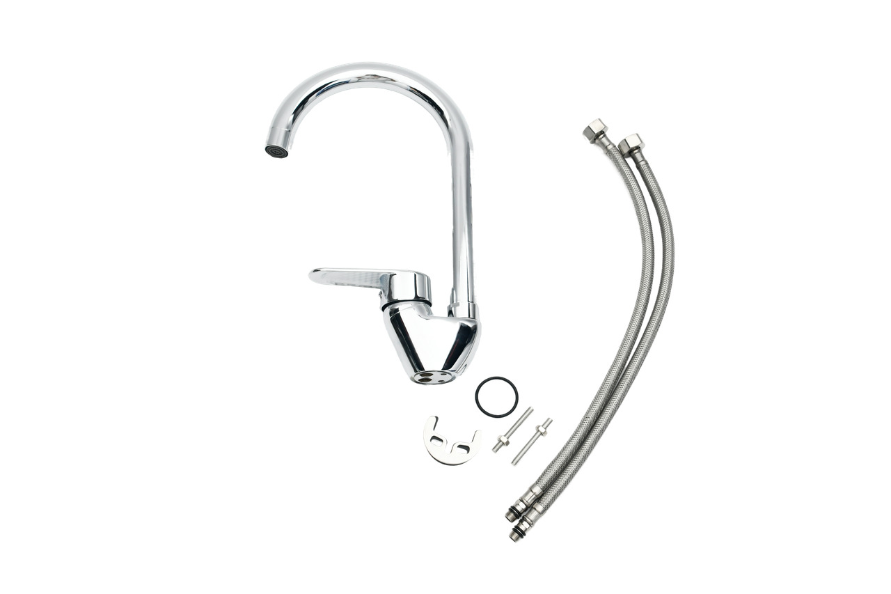 Смеситель для кухни из латуни, с поворотным изливом, однорычажный. Фирменная картонная упаковка.