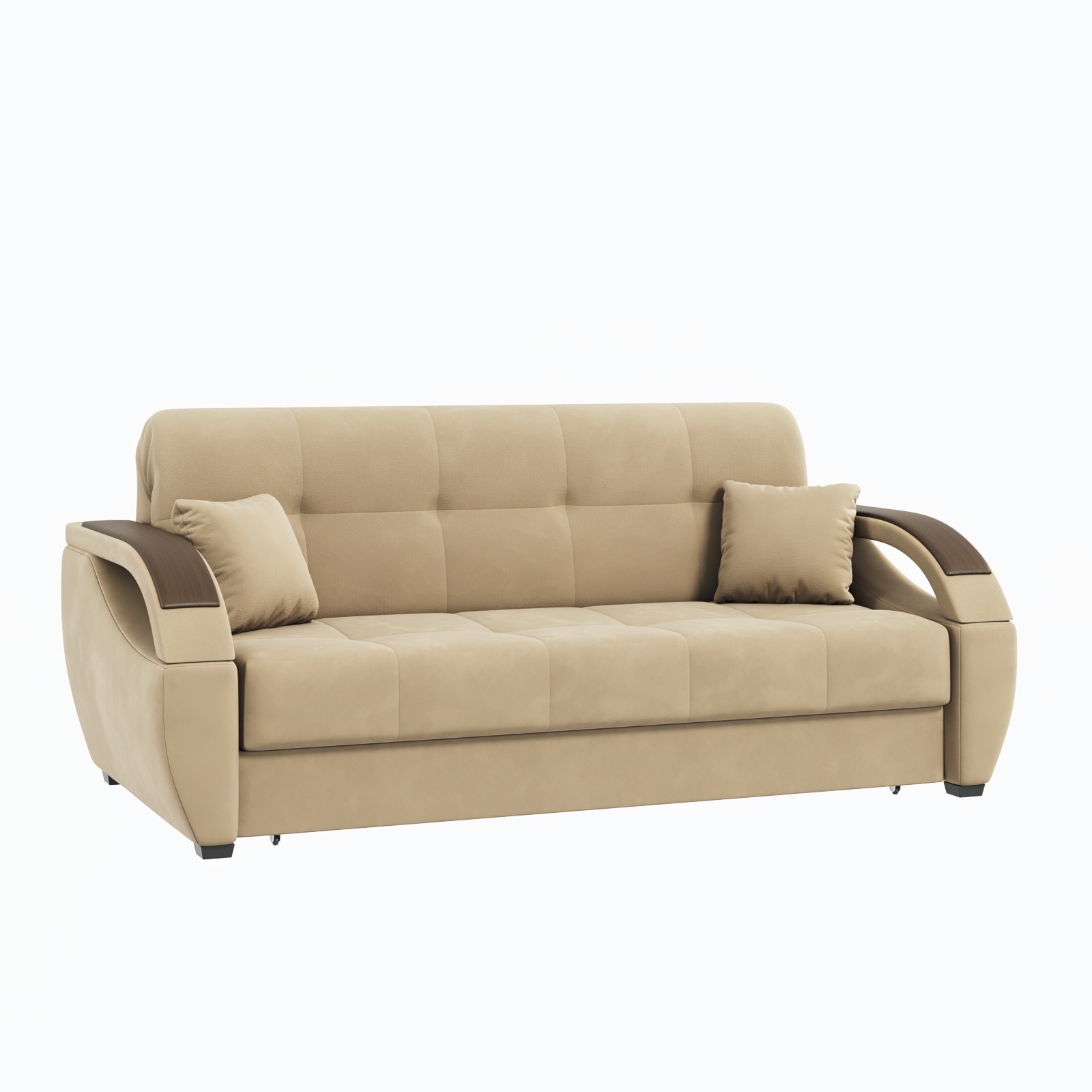 Обивка дивана выполнена из качественного искусственного велюра, который приятен на ощупь и легко чистится.