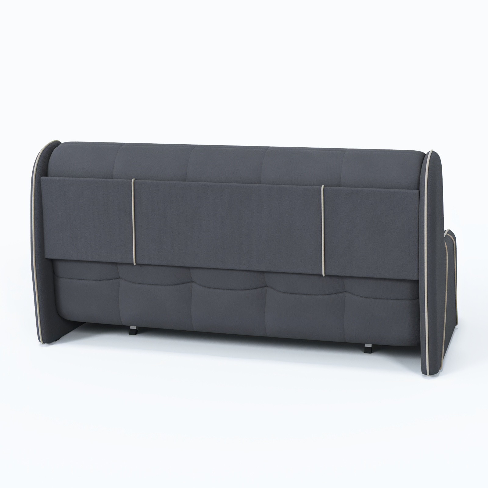 Текстильный велюр высокого качества легко очищается от загрязнений, сохраняя свежесть интерьера. Современные формы и нейтральный тон дополнят любую комнату – от гостиной до студии.