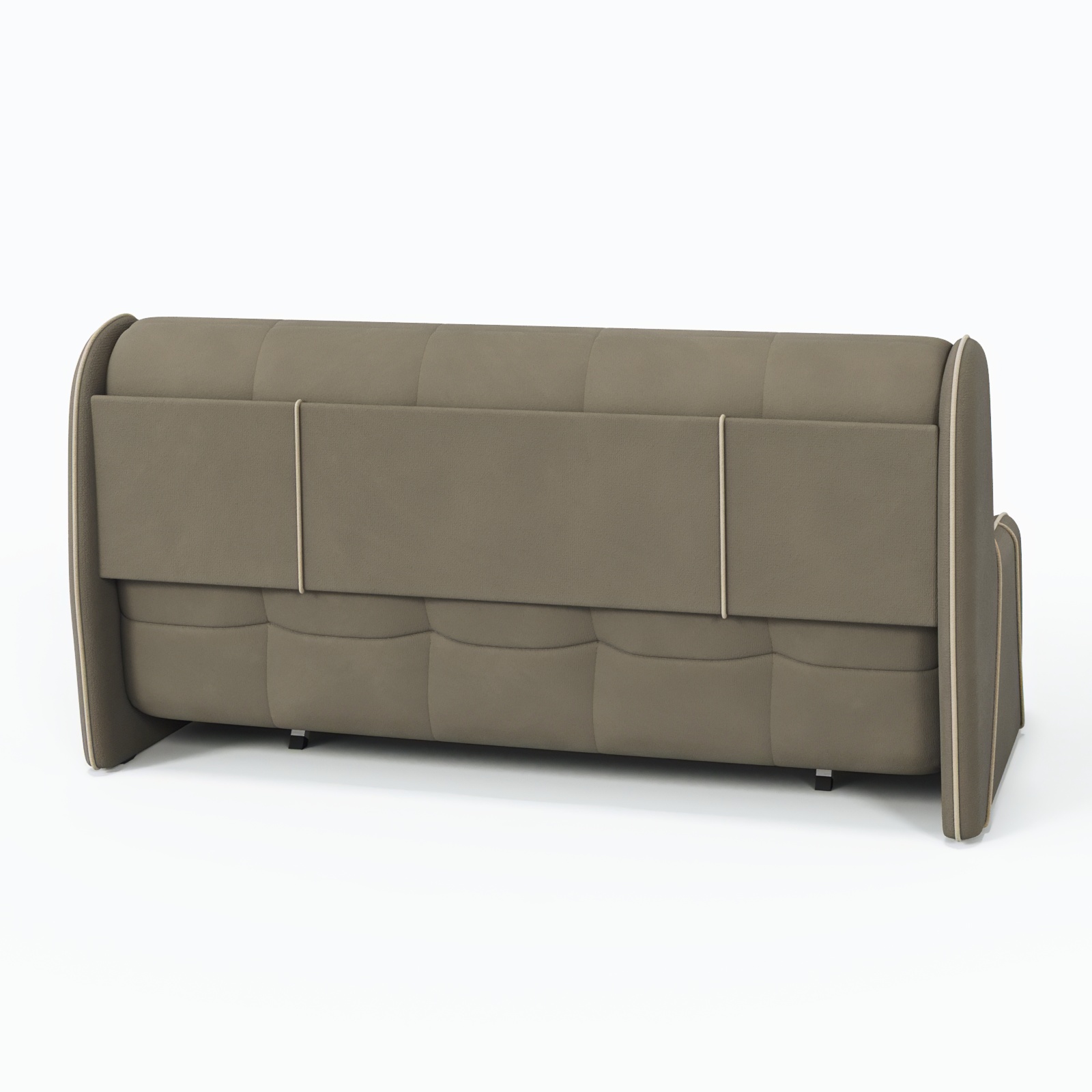 Текстильный велюр высокого качества легко очищается от загрязнений, сохраняя свежесть интерьера. Современные формы и нейтральный тон дополнят любую комнату – от гостиной до студии.