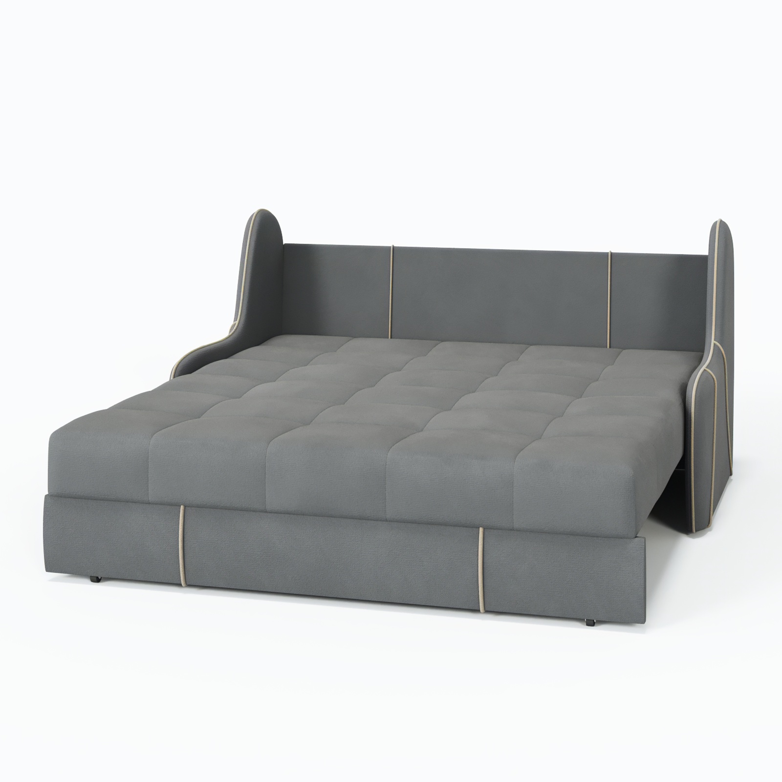 Продуманный механизм «аккордеон» обеспечивает быстрое превращение в удобное спальное место размером 140×200 см, а прочный каркас из натурального дерева и металла гарантирует долгий срок службы.