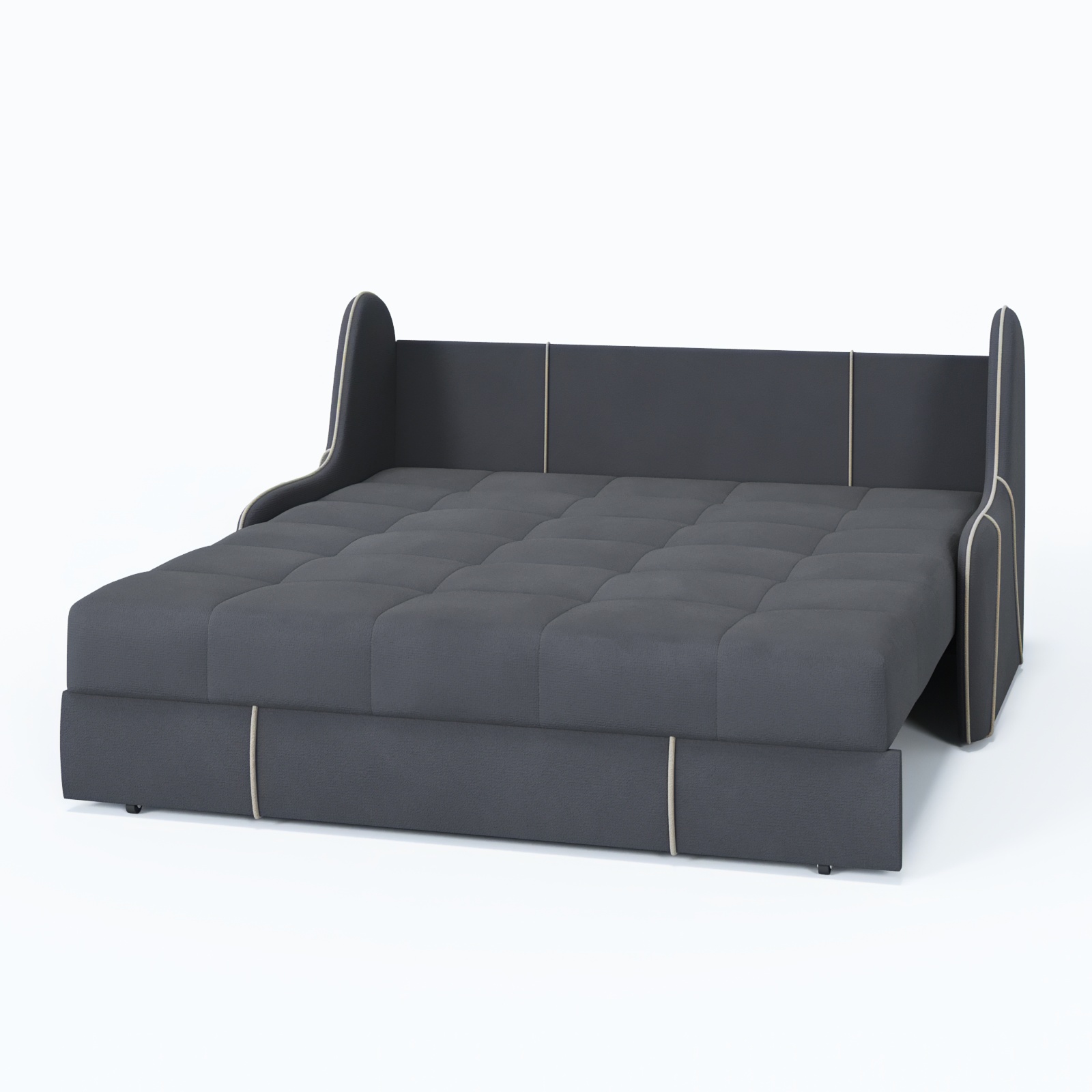 Продуманный механизм «аккордеон» обеспечивает быстрое превращение в удобное спальное место размером 155×200 см, а прочный каркас из натурального дерева и металла гарантирует долгий срок службы.