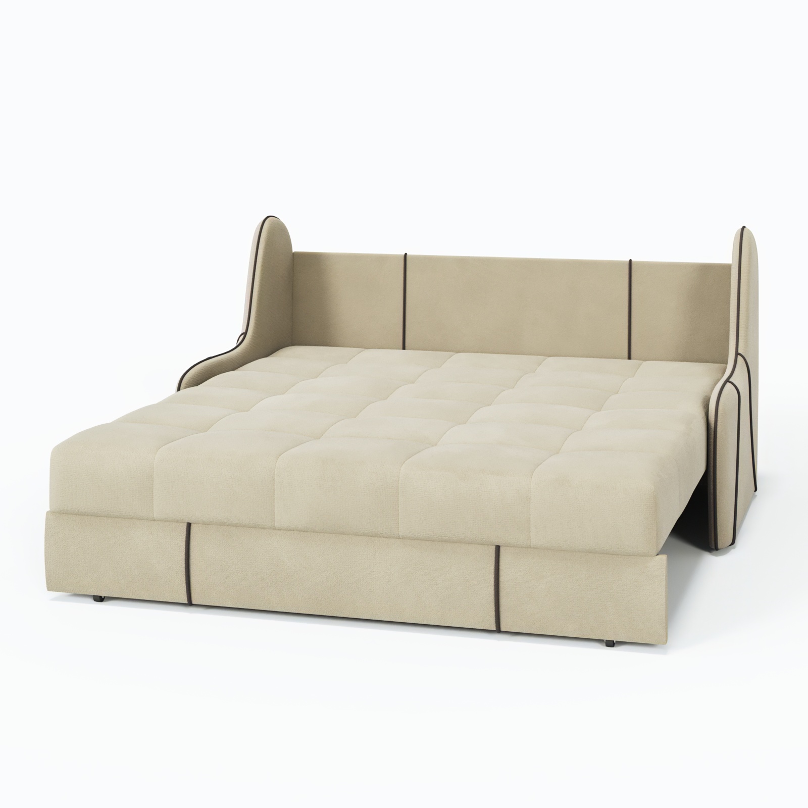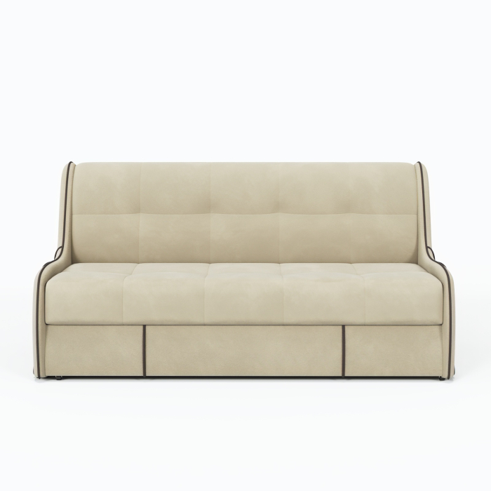 Продуманный механизм «аккордеон» обеспечивает быстрое превращение в удобное спальное место размером 155×200 см, а прочный каркас из натурального дерева и металла гарантирует долгий срок службы.