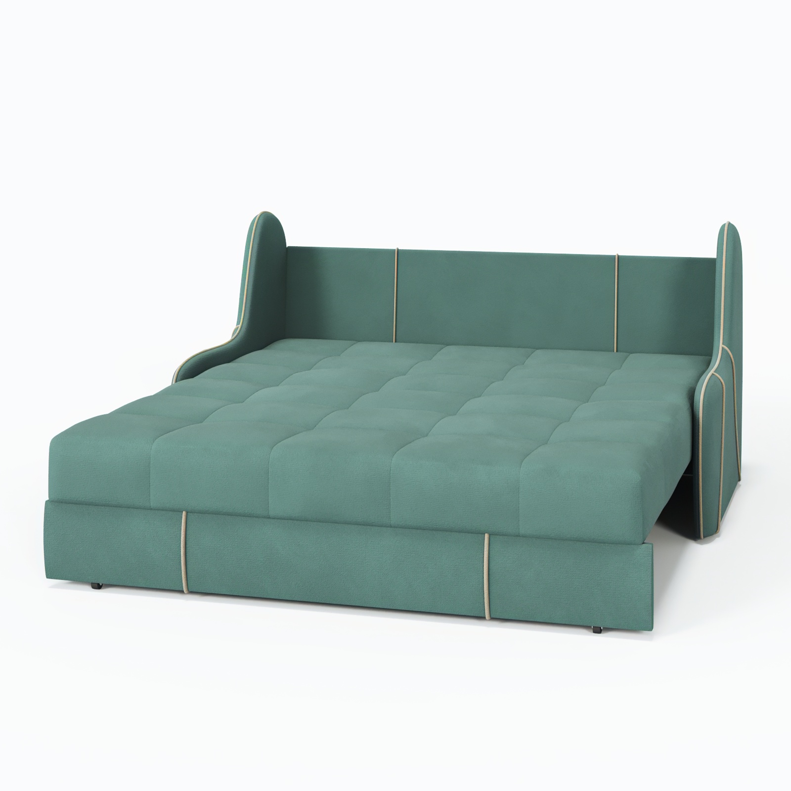 Продуманный механизм «аккордеон» обеспечивает быстрое превращение в удобное спальное место размером 155×200 см, а прочный каркас из натурального дерева и металла гарантирует долгий срок службы.