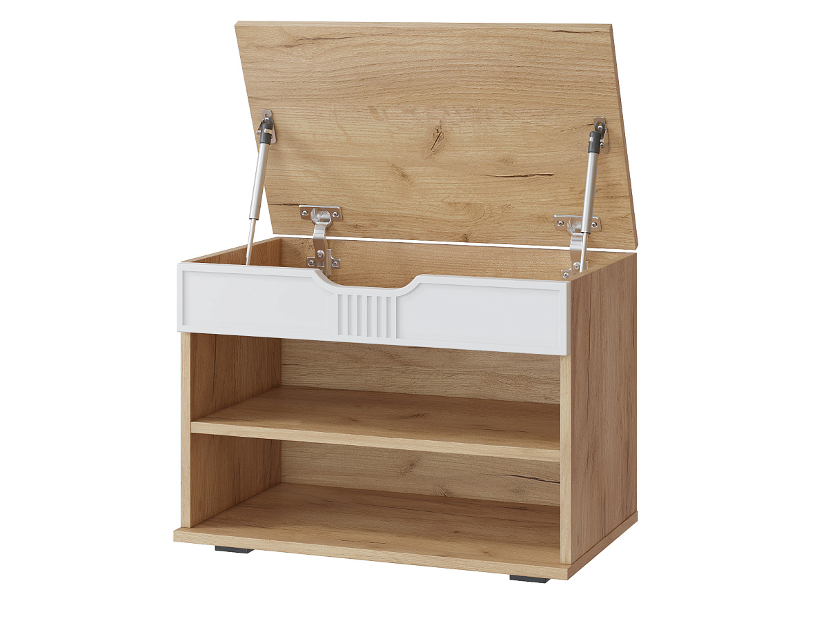 Тумба для обуви Эмилия ЭЛ-44К – компактная модель для комфортного переобувания в прихожую. Лаконичное изделие оборудовано двумя полками для обуви и мягким сиденьем, под которым находится удобный ящик для хранения чистящих средств, щеток или зонта. Ткань мягкой части велюр, наполнение: поролон 40 мм, синтепон, белый флизелин. Высота опоры 20 мм.