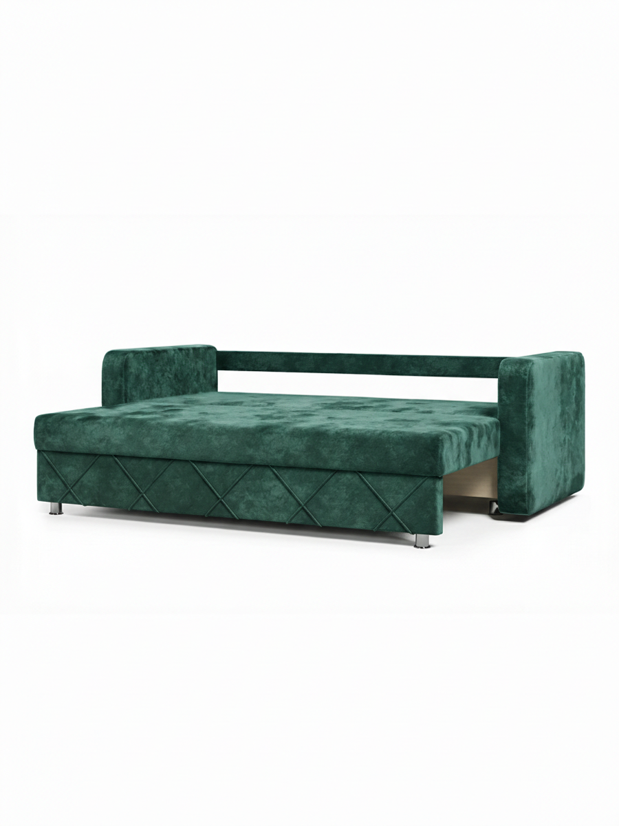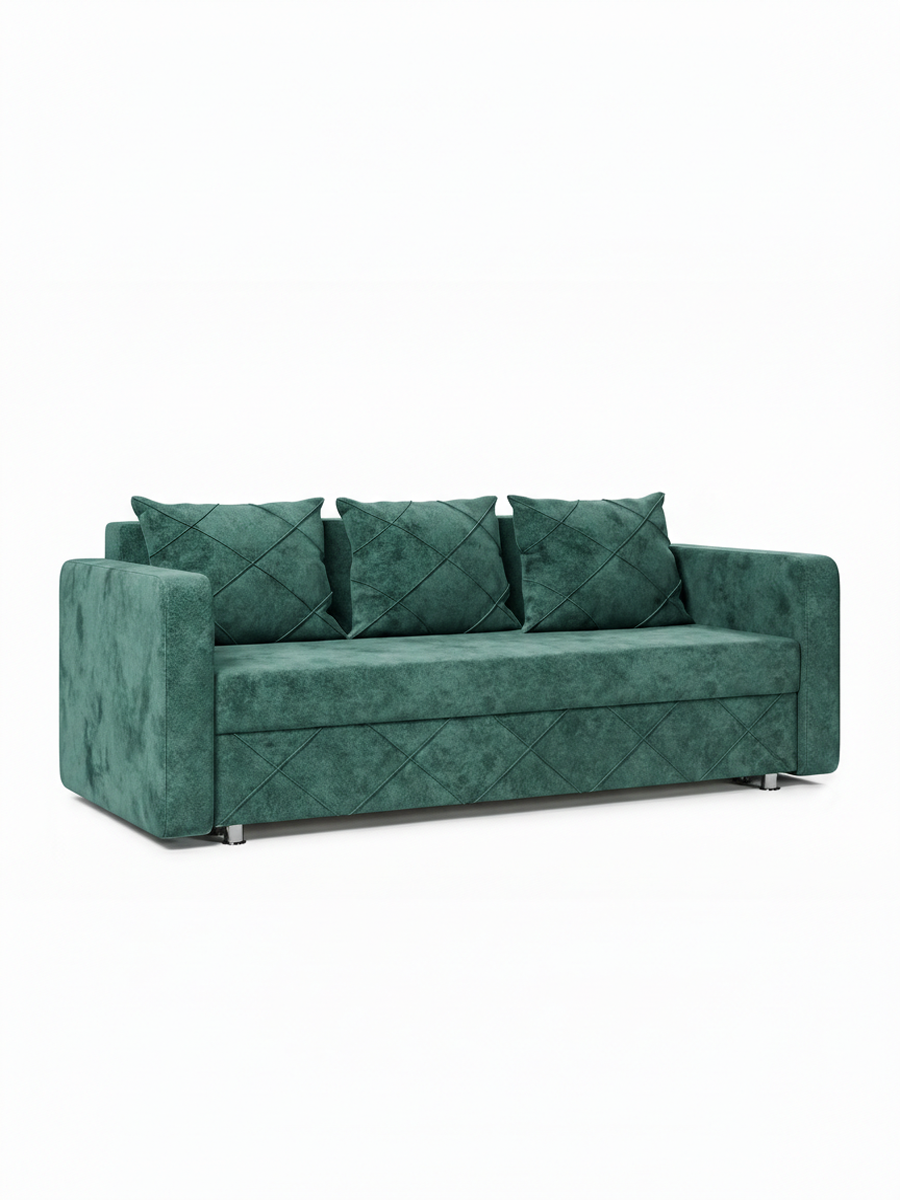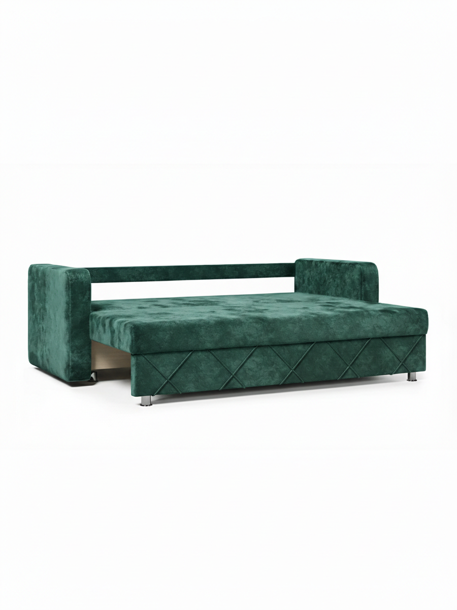 Диван-кровать «Стелла » – превосходная модель мягкой мебели, которая легко станет дизайнерской «изюминкой» гостиной, спальни или дачи. Эта привлекательная модель изготовлена из ДСП, высококачественной фанеры и бруса хвойных пород по лучшим технологиям изготовления мебели. Также диван-кровать «Стелла» дополнен ящиком для белья. Каркас: массив дерева(сосна), ДСП, фанера. Механизм: еврокнижка Ткань: Плюш Спальное место (ШхДмм): 1450х1900 Наполнитель: ППУ(износостойкий, долговечный поролон) Все подушки в комплекте.Срок гарантии на изделие: 18 месяцев.