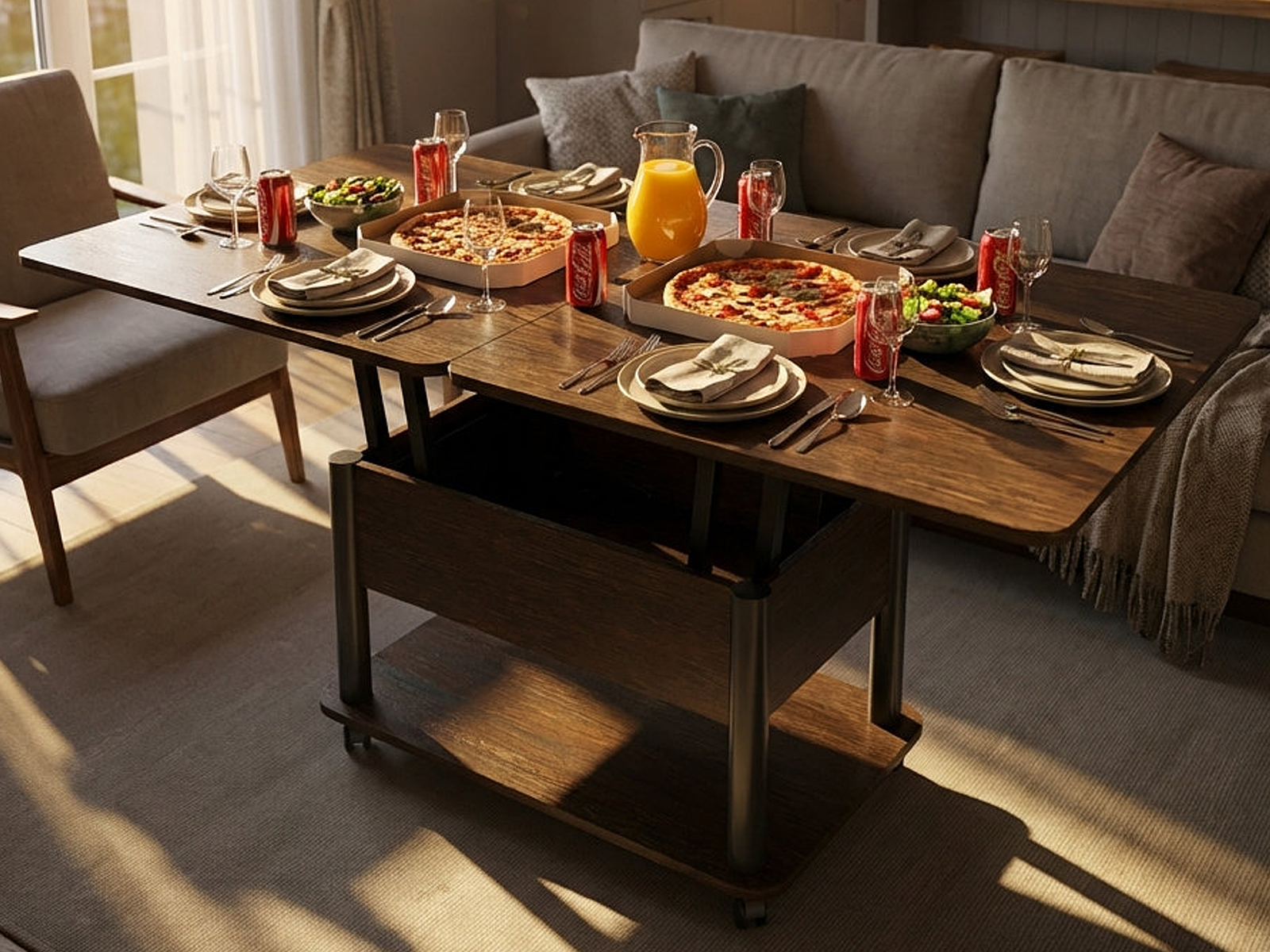 Стол трансформер Джокер — универсальное решение для дома и офиса, где важны практичность и эстетика. Благодаря колёсикам с фиксацией стол легко перемещать и надёжно закреплять на месте. Прочная столешница из ЛДСП (22 мм) с тремя соединительными петлями гарантирует долговечность и устойчивость к нагрузкам. Усиленный механизм трансформации исключает шатание в любом положении. В сложенном виде это компактный журнальный стол, а в разложенном — обеденный, рассчитанный на 8 человек. Универсальный дизайн позволяет использовать стол для семейных ужинов, дружеских встреч или работы, делая его полноценным и функциональным элементом интерьера.