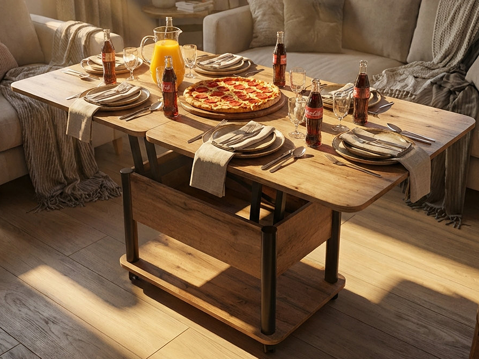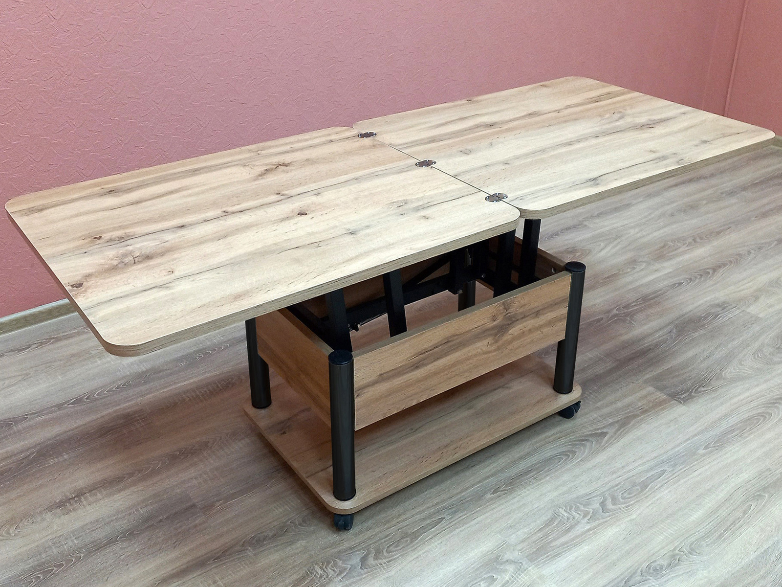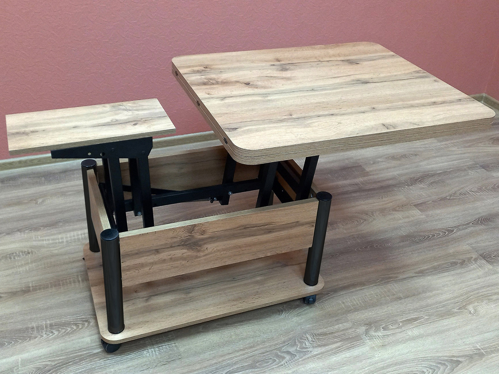 Стол трансформер Джокер — универсальное решение для дома и офиса, где важны практичность и эстетика. Благодаря колёсикам с фиксацией стол легко перемещать и надёжно закреплять на месте. Прочная столешница из ЛДСП (22 мм) с тремя соединительными петлями гарантирует долговечность и устойчивость к нагрузкам. Усиленный механизм трансформации исключает шатание в любом положении. В сложенном виде это компактный журнальный стол, а в разложенном — обеденный, рассчитанный на 8 человек. Универсальный дизайн позволяет использовать стол для семейных ужинов, дружеских встреч или работы, делая его полноценным и функциональным элементом интерьера.