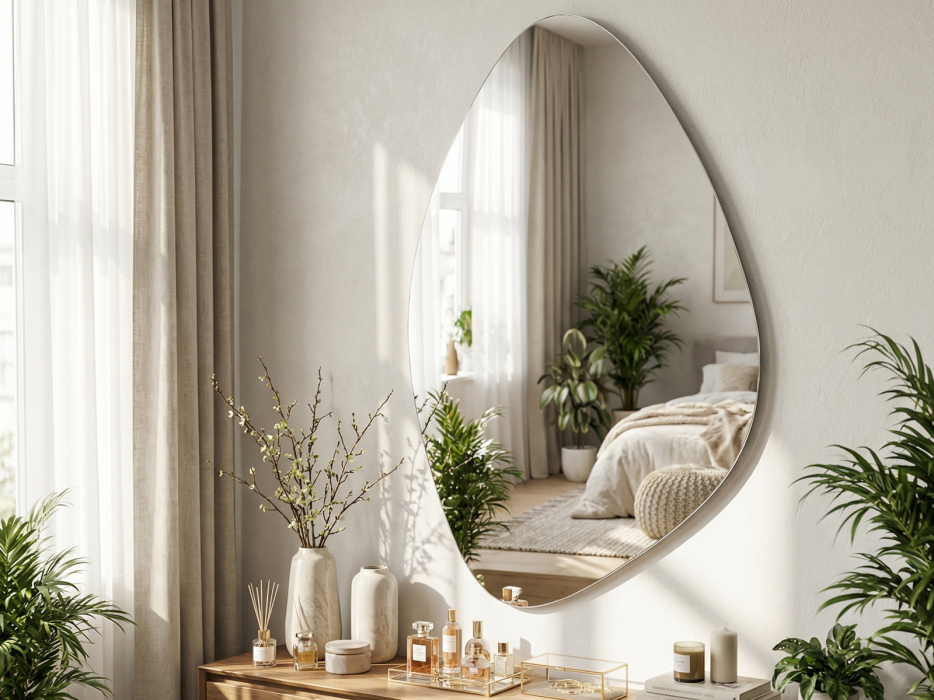 Настенное фигурное зеркало Сельетта-8 без рамы в современном органическом стиле станет выразительным акцентом в любой комнате, визуально расширит пространство и добавит больше естественного света в интерьер. Лаконичный дизайн идеально подходит для современных интерьеров в стиле минимализм и сканди: плавные асимметричные линии создают эффект дизайнерского объекта, поэтому зеркало уместно в прихожей, спальне, гостиной, гардеробной или домашнем кабинете.