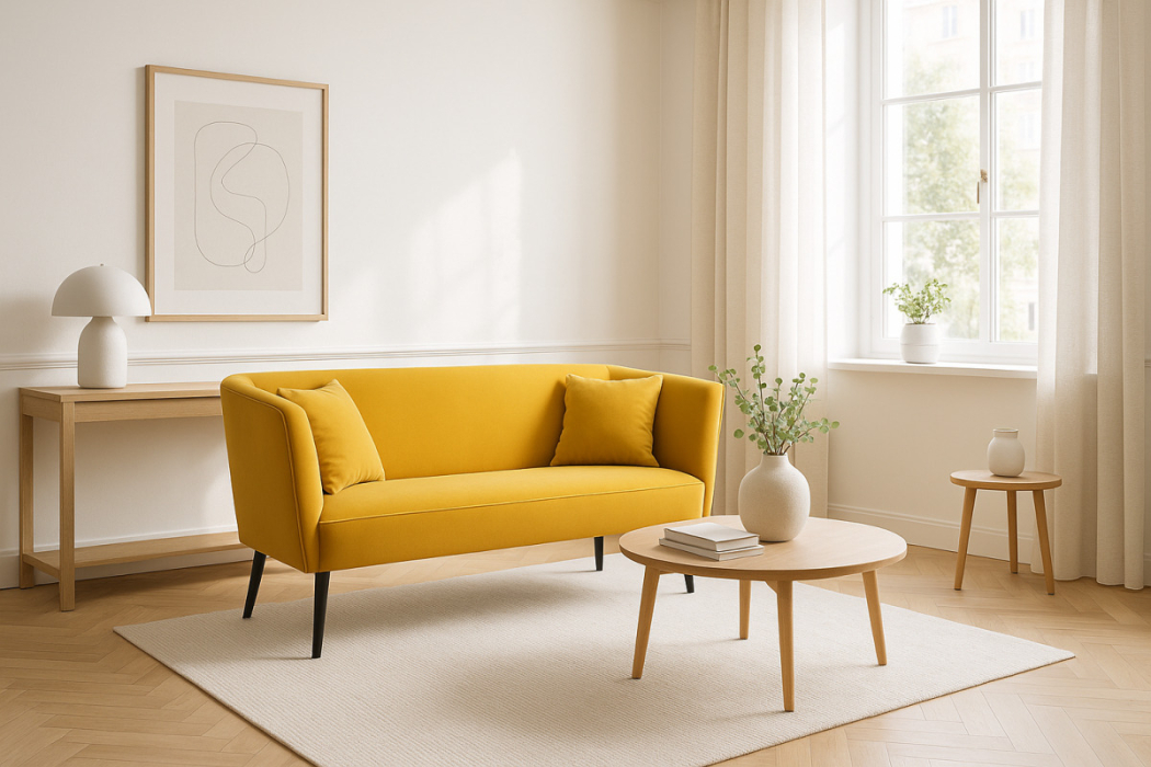 Диван Римини 140 см в базовых тканях (Велюр желтый) Код I0000455433