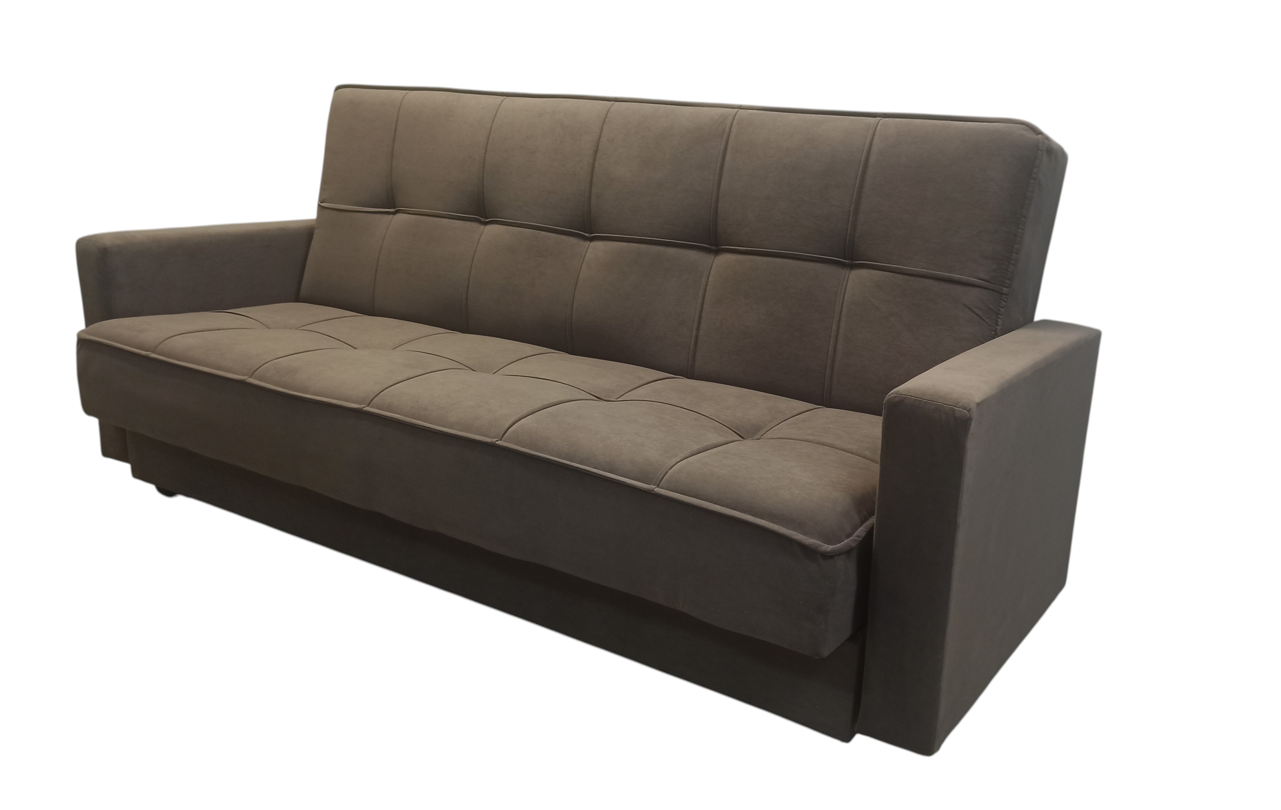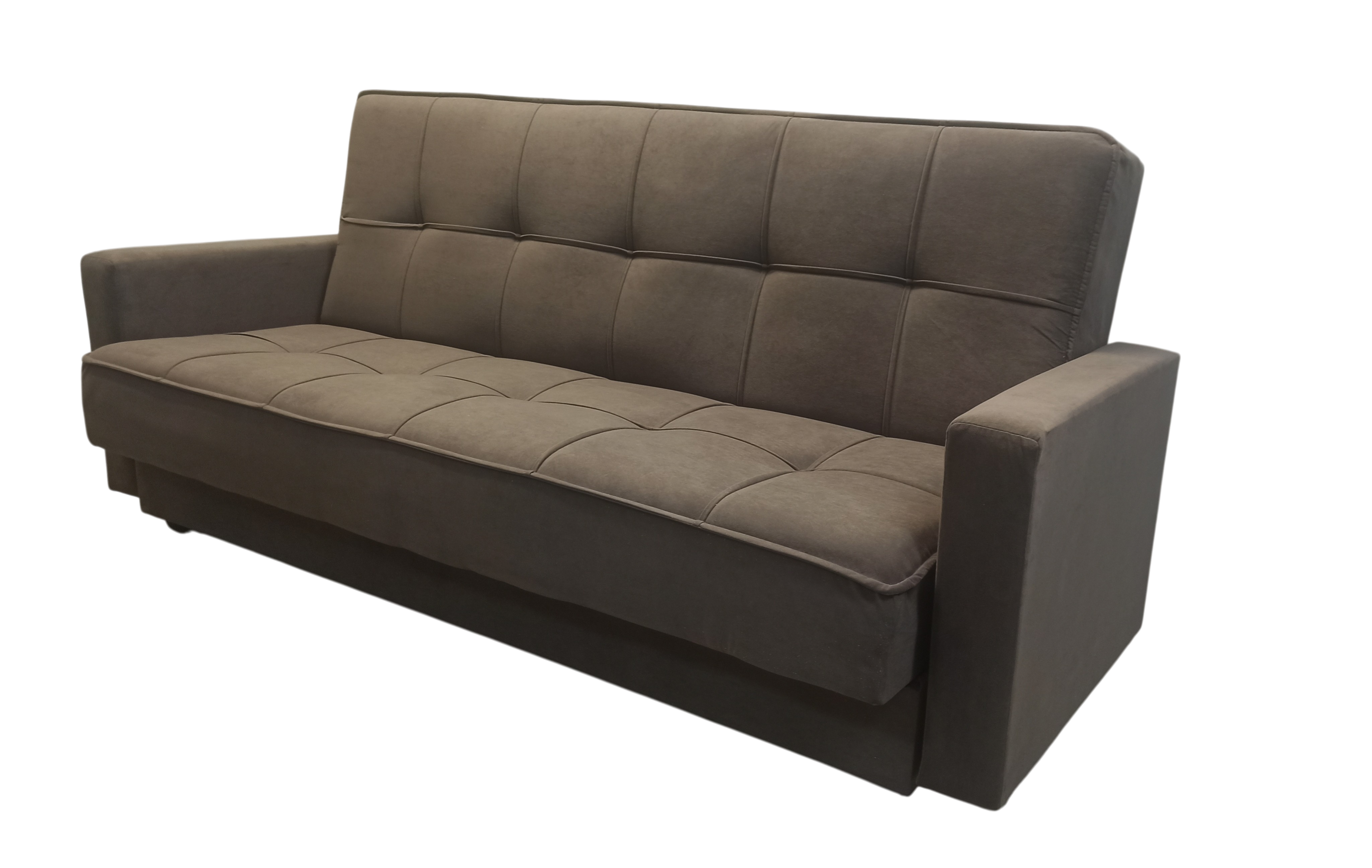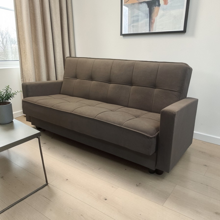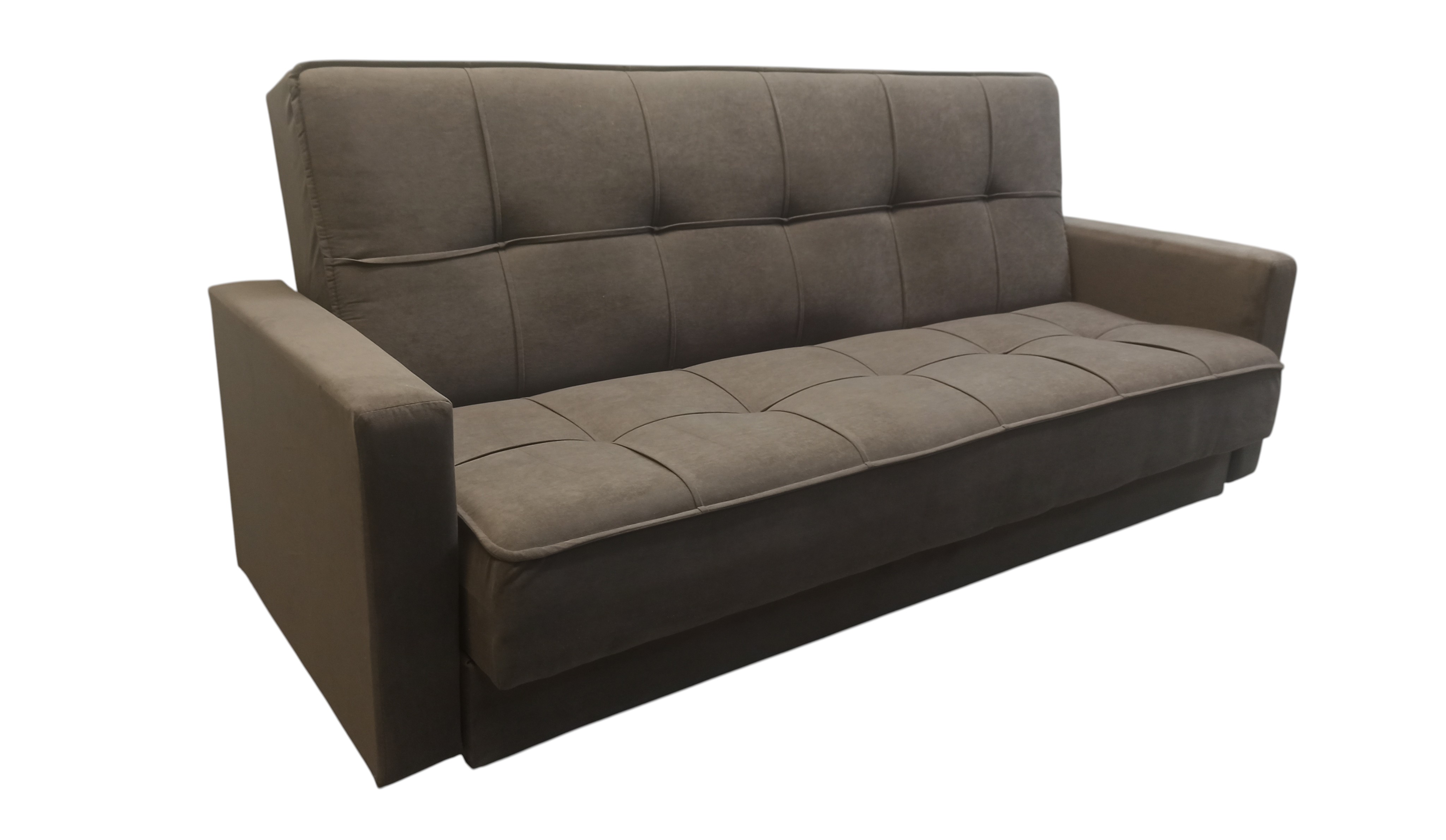 Диван-книжка изготовлен из ткани велюр. ВЕЛЮР - на вид напоминает бархат, приятен на ощупь – мягкий и пушистый. Ткань отличается прочностью и не выгорает на солнце. Материал представляет собой нетканое полотно, на которое методом напыления наносится бархатистая поверхность. Используются и пропитки – с их помощью ткань снабжается слоями, отторгающими влагу и грязь. Подходит для помещений с домашними животными. Диван имеет трансформацию раскладывания "Книжка". В положение спального места диван преобразуется путем откидывания спинки дивана назад. Сложить диван тоже не представит труда. Для этого нужно поднять переднюю часть сидения и наклонить ее вперед до щелчка пружины в механизме. Когда пружинный механизм сработает, части дивана зафиксируются в положении угла. После этого наклоняйте поднятое ранее сидение на себя.