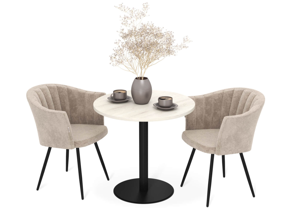Ножки каркаса стула выполнены из металлической трубы диаметром 25 мм. Каркас стула и опора стола не