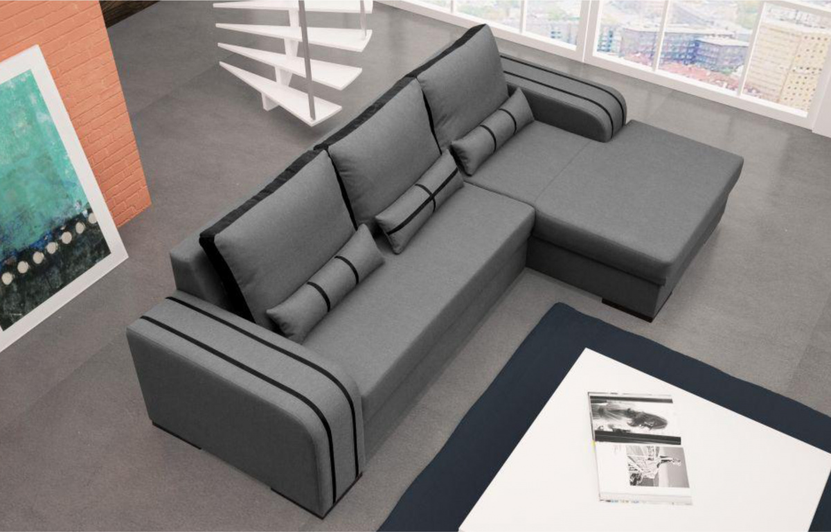 Размеры модели: длина — 283 см, глубина — 165 см, высота по спинке — 80 см, длина оттоманки — 225 см.
