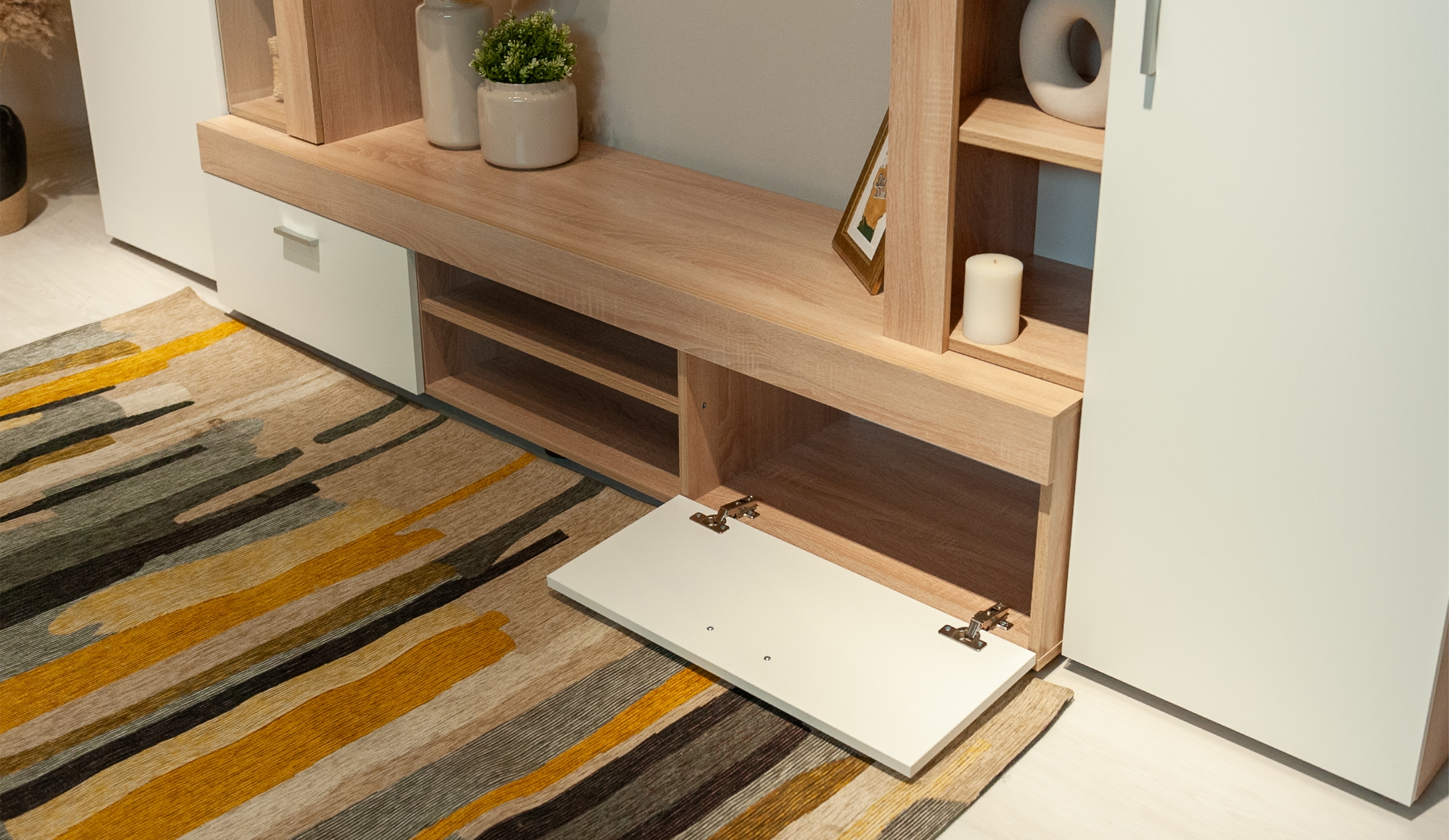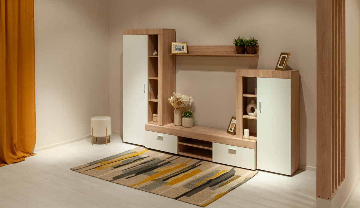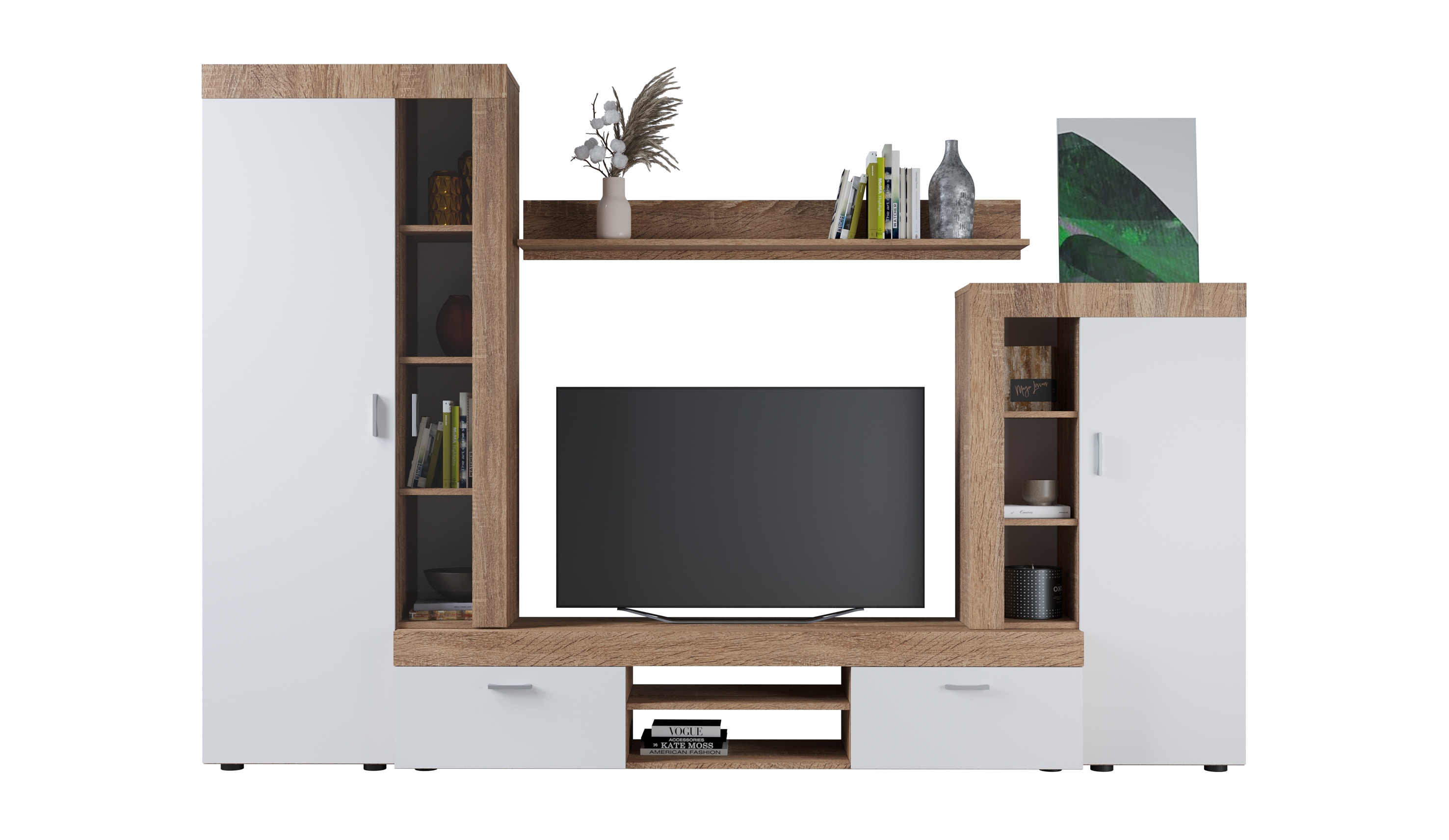 Стенка «Орфей» – яркий представитель стиля минимализма. Стилистическим акцентом являются утолщенные линии корпуса, которые придают выразительность и брутальность стенке. Природная гамма цветов декора – теплый «дуб сонома» и прохладный «белый» создают комфортное светлое пространство. В стенке предусмотрены открытые и закрытые отделения для хранения вещей, медиааппаратуры и TV. Полноценный платяной шкаф с выдвижной поперечной штангой дополнительно можно укомплектовать полками. Материалы стенки экологически чисты и безопасны.