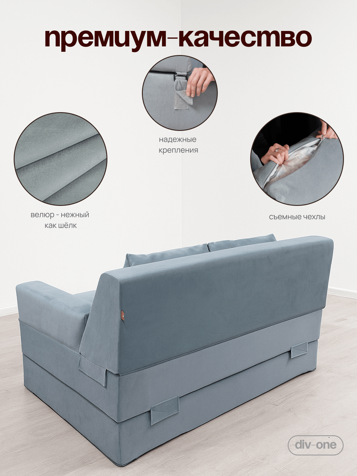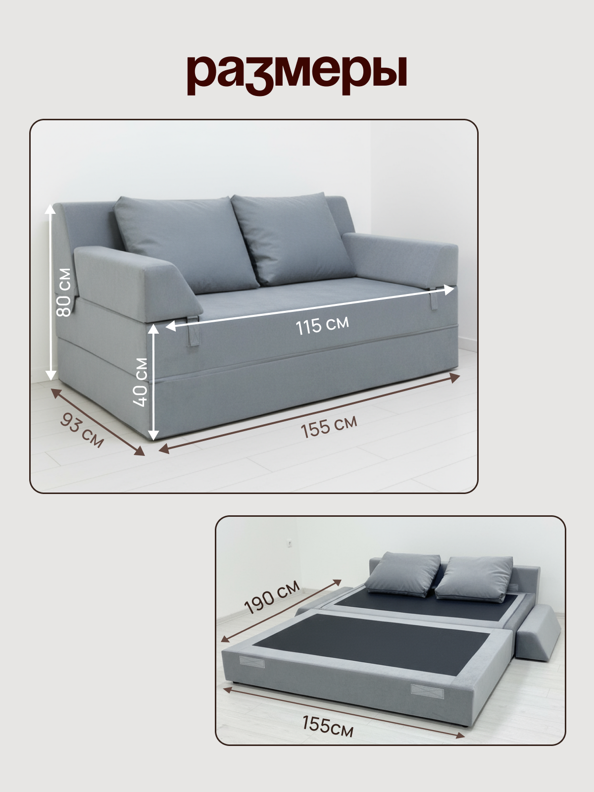 Экологически чистые материалы и продуманный дизайн позволят создать уютную атмосферу в комнате. Удобные съемные подушки обеспечивают дополнительный комфорт во время отдыха, а легкость конструкции позволяет без труда перемещать диван из комнаты в комнату. Книжка подходит не только для квартиры, но и для дачи. Стильный вид впишется в любой интерьер — от лофта до модерна.
