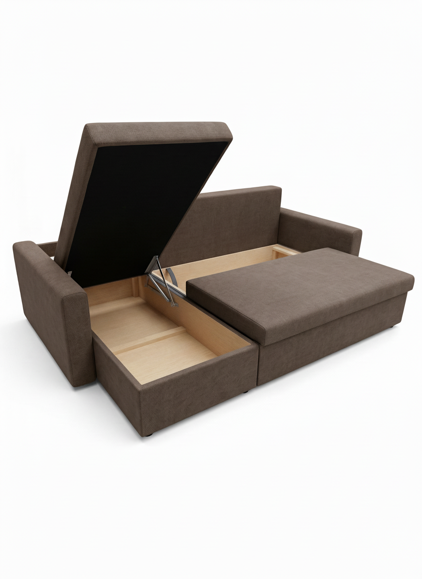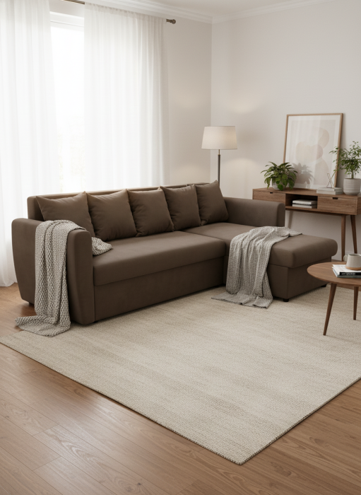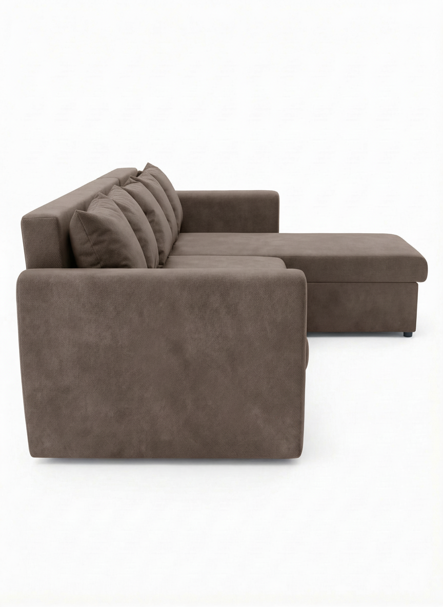 Диван-кровать «Мартин угловой" » – превосходная модель мягкой мебели, которая легко станет дизайнерской «изюминкой» гостиной, спальни или дачи. Эта привлекательная модель изготовлена из ДСП, высококачественной фанеры и бруса хвойных пород по лучшим технологиям изготовления мебели. Также диван-кровать «Амстердам» дополнен ящиком для белья. Диван изготавливается из велюра 3 категории Люкс (Lux) "B-13", его характеристики : Износостойкость, циклы по Мартиндейлу - 15000, Плотность, г/м2 - 300, Состав - 97% ПЭ, 3% Нейлон. Наполнителем является ППУ. Мягкая мебель имеет удобный механизм трансформации «Еврокнижка», справиться с, которым может даже ребенок. Каркас: массив дерева(сосна), ДСП, фанера. Механизм: еврокнижка Ткань: Велюр Спальное место (ШхДмм): 1400х1950 Наполнитель: ППУ(износостойкий, долговечный поролон) Срок гарантии на изделие: 12 месяцев.