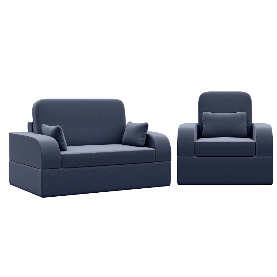 Бескаркасный набор мебели Мико, диван и кресло (Синий) Код I0000457837