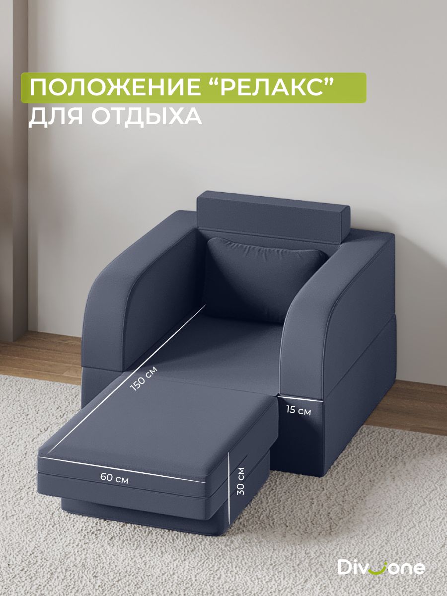 Размеры дивана (ШхВхГ): 160х100х100 см, спальное место 160х200 см Размеры кресла (ШхВхГ): 97х97х100 см, спальное место 97х210 см