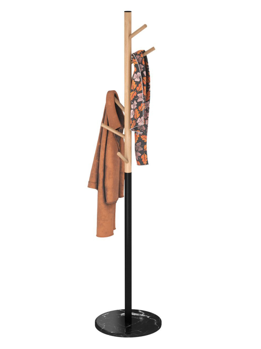 Сочетание натурального бука, мрамора и металла подойдет для дома, офиса и других общественных учреждений. Верхняя часть вешалки-стойки выполнена из натурального бука, 6 крючков расположены "по спирали", что позволяет компактно разместить верхнюю одежду.