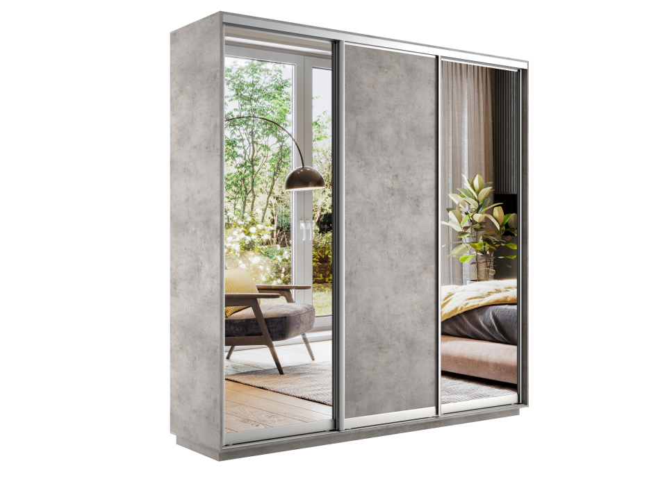 Отзывы о Столплит Шкаф-купе Экспресс Медиум (2 зеркала) трио 2400 x 2400 x 600 Бетон серый