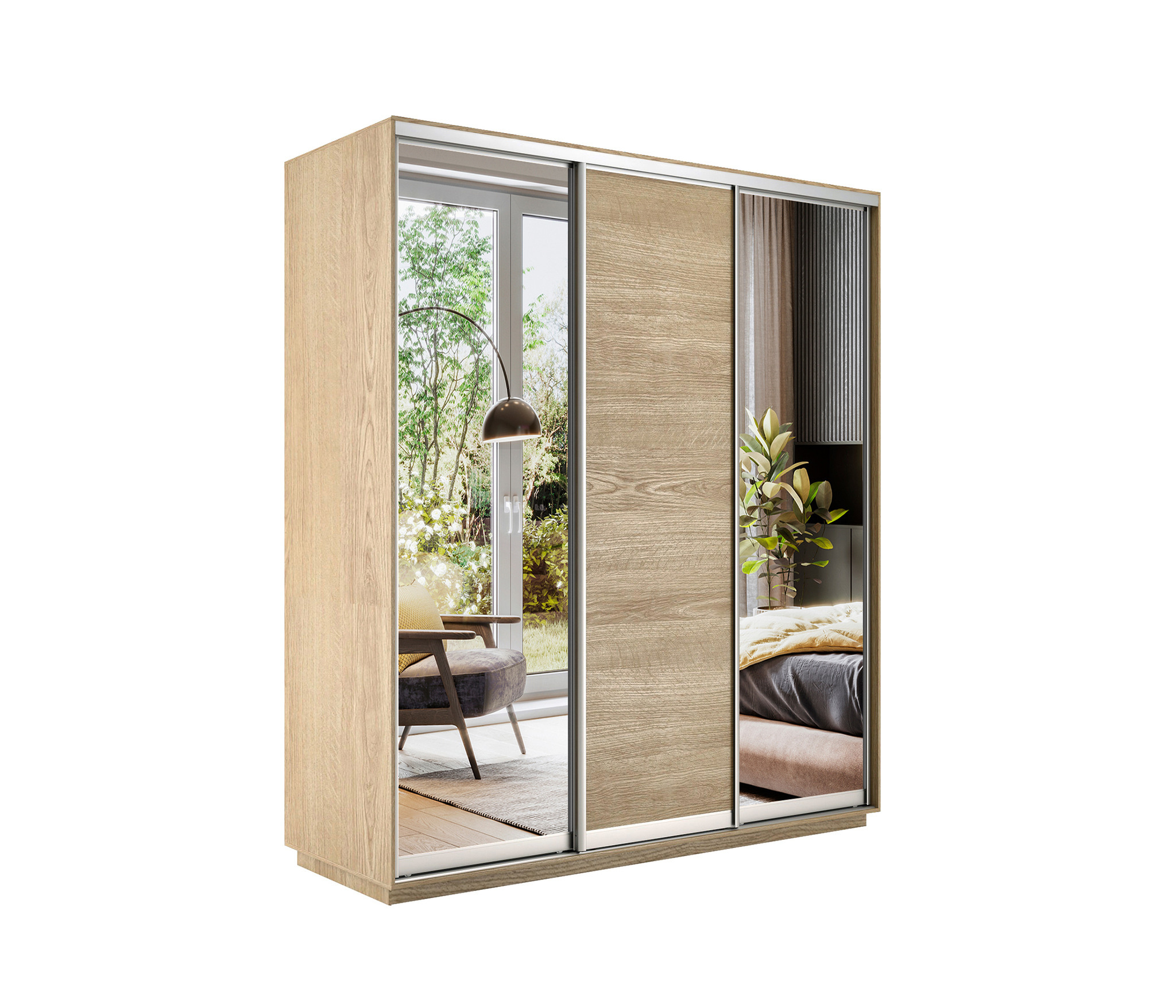 Отзывы о Столплит Шкаф-купе Экспресс Медиум (2 зеркала) трио 2400 x 2400 x 600 Дуб Сонома