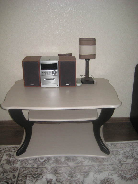 Стол дополнен полкой длиной 600 мм, шириной 300 мм и основанием на колесной опоре, что позволит легко перемещать его по комнате.