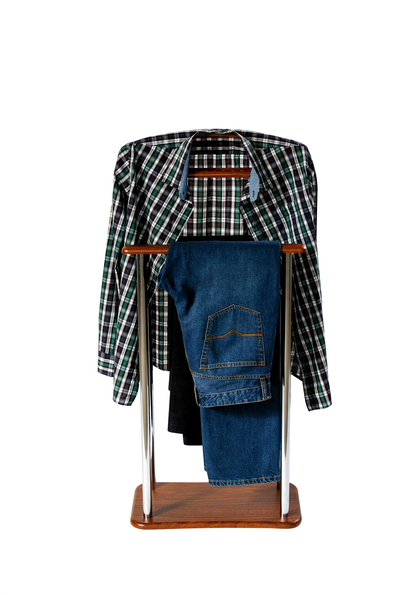 Благодаря наличию двух планок для брюк и полочки для аксессуаров- данный вариант вешалки костюмной отлично подойдет для аккуратного хранения вещей.