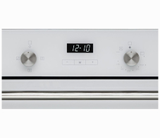 Газовый духовой шкаф с газовым грилем, конвекция, дисплей Cold White с сенсорным управлением, панель управления - нерж сталь, металлические поворотные регуляторы, газ-контроль, электроподжиг, звуковой сигнал окончания приготовления, каталитическая самоочистка, объем духовки 67 л, телескопические направляющие на 1 уровне, трехслойное остекление, эмаль легкой очистки, покрытие Clean Steel, в комплекте: глубокий противень, противень для выпечки и хромированная решетка, цвет - белое стекло
