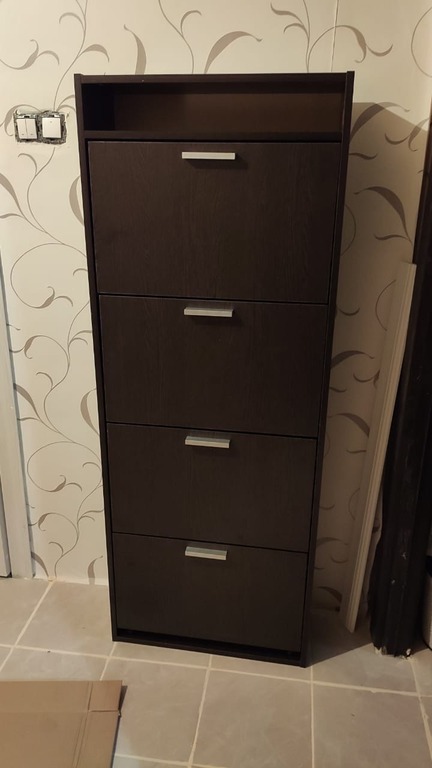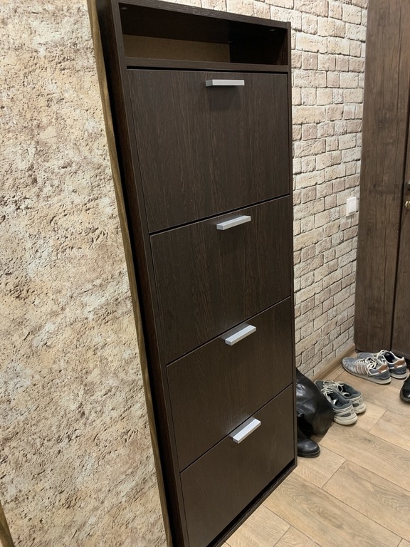 Нравится размер, высокий и вместительный. Чётко вписался и не занимает много места. Материал немного некачественный, при вкручивании саморезов откололся кусок, в целом не страшно. Вполне симпатичный за свои деньги. Свою функцию выполняет. Собирается легко. Комплектующие пришли с избытком. Сборка заняла 35 минут