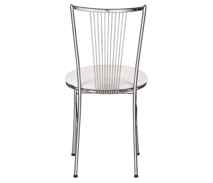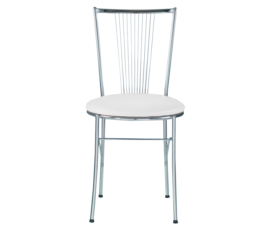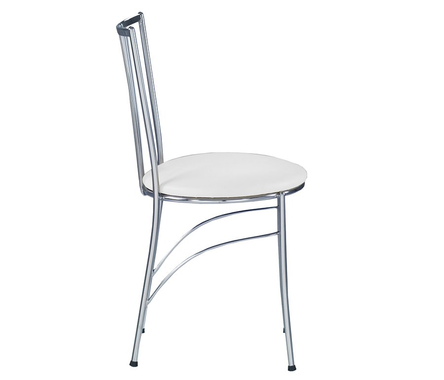 Стул с устойчивой металлической рамой с хромированным покрытием, мягким сиденьем, обитым искусственной кожей. Заглушки на ножках защищают поверхность пола от повреждений. Станет украшением как уютной кухни, так и кафе.
