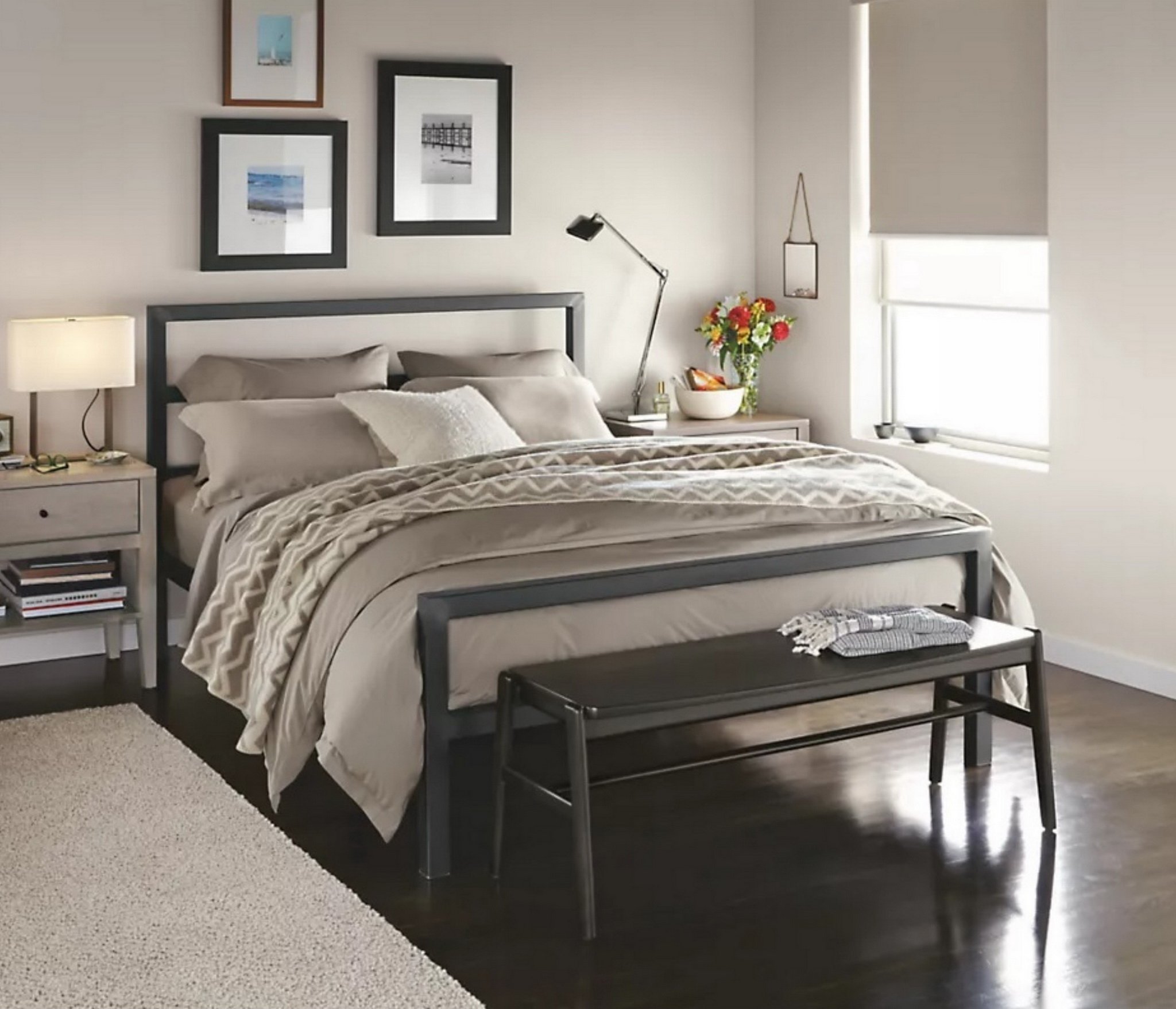 Благодаря отсутствию сплошного полотна изголовья и основания и его замены на горизонтальные перекладины модель выглядит изящно и совершенно не громоздко, благодаря чему может гармонично дополнить любой интерьер в современной стилистике.
