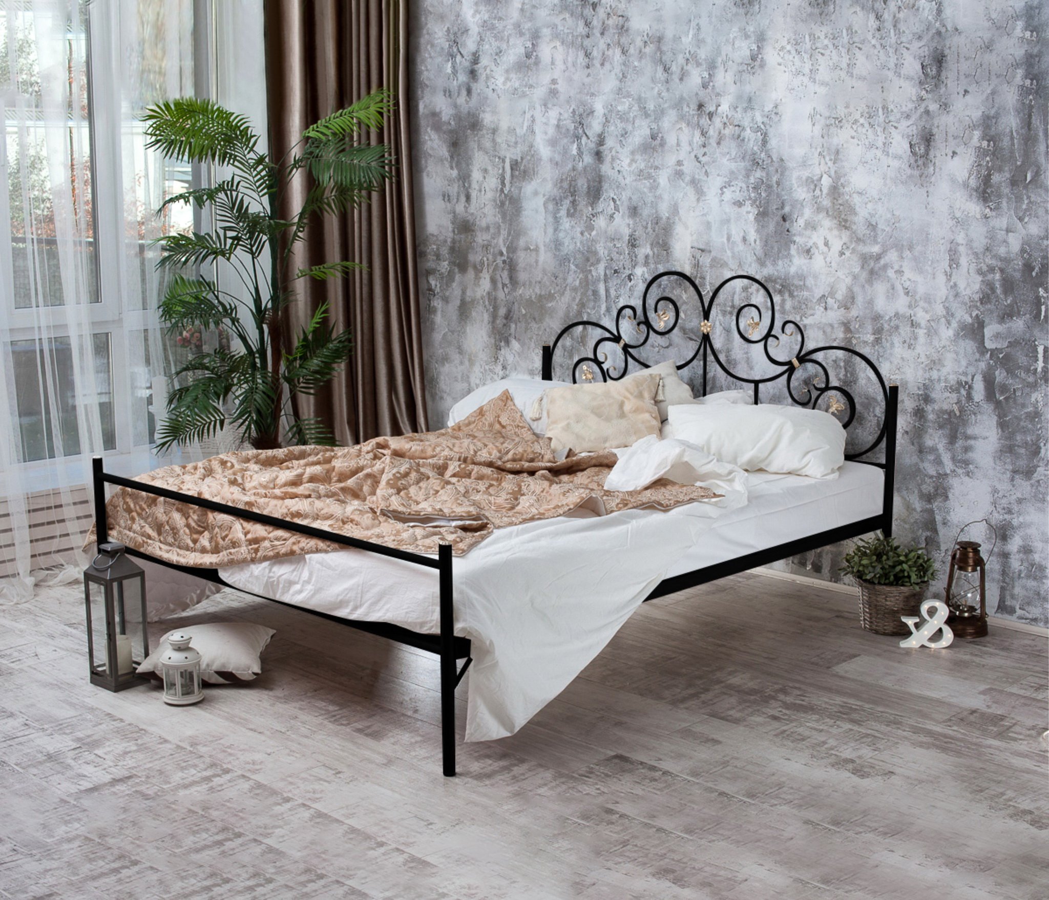Кованая кровать Афина 1.8 с одной спинкой (Черный)