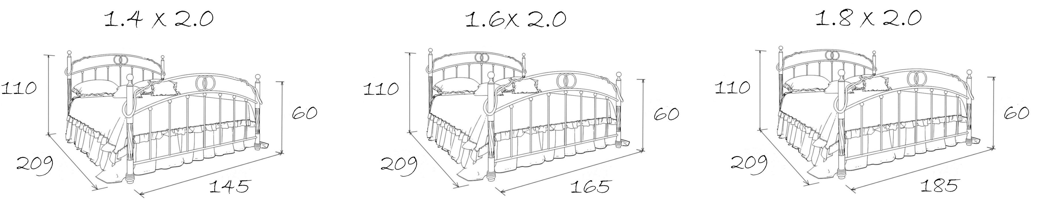 Размеры спального места (ДхШ) 2000х1800, высота изножья 600 мм, максимальная нагрузка на 1 спальное место - 150 кг.